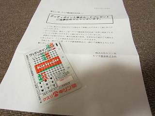 今日は寒い寒い…が。。。しかし。ウチの息子がエアコンつけないで!って言うのでつけてません…。ウチ、そういえば、夜はあまり付けないかも…。ご飯食べた後すぐにお風呂入って布団に入るのでエアコンをつけることがないというか…。朝も6時~7時までの1時間だけだし。あまりつけてないかも。それでも電気代が高いのは何故じゃぁ~??さて。昨日100円ショップで買ってきた県庁所在地の下敷き息子が昨日の夜ずっと見ててもう殆ど覚えたみたいです。やっぱり興味があることは覚えるのが早いです。天気予報オタクでもあるので、聞いて覚えてるのもあったみたいで…。毎日NHKの天気予報見てるので、これで覚えているもんですね。「とくダネ!」のアマタツの本!!面白そう~♪保育園では年長になるための準備もボチボチしているようです。移動図書の当番や4つのお約束の当番(朝礼で言わされるそうです)など。あとは、清掃活動もしているようです。あと2ヶ月で進級なんですね。早い。まだまだ頼りない息子、年長さんが務まるのかどうか・・・(苦笑)今日、仕事から帰ってきたらポストに封筒が届いていました!2月最初の当選品です♪キリン堂・ヤマサ醤油「グッディポイントカード1枚」少額なのでしょうが、助かります♪時々、牛乳とか食パン買いに行くので、使っちゃおう!先週無事に「3万円」を突破したレビュナビですが、もうすぐ4万円になりそうです!!今週中に突破するといいなぁ♪1週間で1万円のペースで稼げるように頑張ってみようかな。