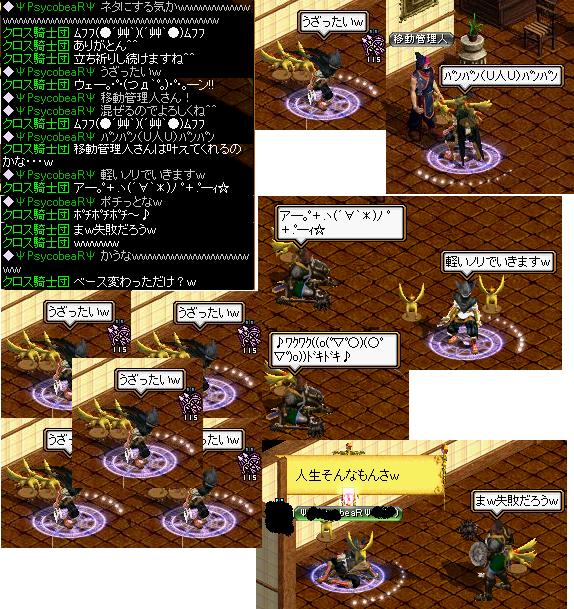 相手 グロ会様む~><まけたorzこちら物理火力とWIZの参加が~~~~wって感じで相手知識と物理に徐々にこちら崩されて総崩れwwwクロス一人になりましたw立て直しても同じように崩されてって感じでしたw悔しいですね><次はリベンジしたいですね^^グロ会様ありがとうございました^^ちなみにクロスの現在のレベ^^5日で8レベ!健康BISなのにがんばってますwそろそろシルフラあきましたけどね・・・・wって事で|*≧▽≦)ノシ.。+゜☆マタネ☆゜+。.