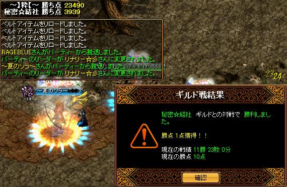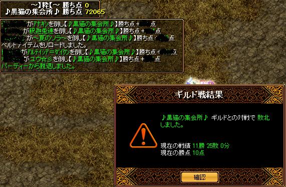 11月29日かちかち山の狸吉隊様とGvTはこちらが上なのですが、経験なり作戦なりの差が大きいですね><かちかち山の狸吉隊のみなさまありがとうございましたヾ(●´∀`●)ノ゛キャッキャッ12月1日N_MOEURS_BIZ様さすがでしたね・・w武道さん3人をBIS1人じゃなけるwwwN_MOEURS_BISのみなさんありがとうございました~^^|*≧▽≦)ノシ.。+゜☆マタネ☆゜+。.
