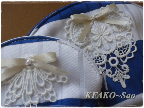 全く台風の足音は聞こえませんでした。。。近くを通ったはずなのにどうしてでしょ???自然って不思議・・・ さてさて オークション出品再開しました♪前に紹介した イカリ柄のバッグ等を再開作品にする予定でしたが変更して シェルポーチのセットを先ほど出品しました。1スタです♪ロイヤルブルーのボーダーニットをレースを使い大人ガーリーに仕上げたポーチです。。。★Sao's HANDMADE☆ENTER☆★使いやすいサイズだし、色もきれい☆是非ご覧くださいね♪明日も暑いよね・・・きっついなぁ(泣) 応援の クリック おねがいします今日も良い日でありますように・・・