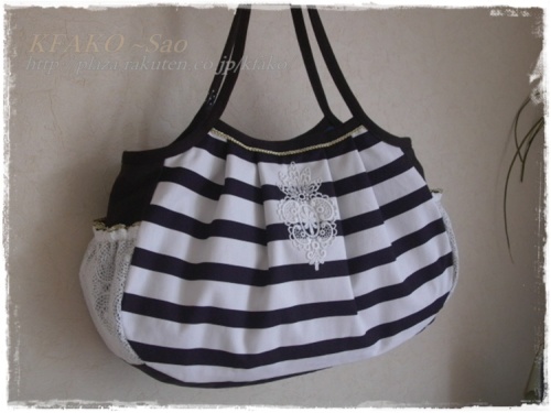 久々ぎっくり腰になり、何かと不自由なSaoです(笑)とは言え、ハードだった仕事もお休みをもらえてゆとりの時間が嬉しい感じ&昨日、今日と心地よいお天気に恵まれ気分が良いですぅ♪退屈だ~と思っていたのですが、グッドタイミングで注文していた本が届き、ラッキーでしたちなみに買ったのは、手芸ジャンルのバーゲン本。。。いつも、お気に入りが見つかれば即買いなのです送料も無料だし☆話がそれましたが・・・大好評をいただきました、マリンなニット生地を使ったバッグ・・・まち付きのグラニーにしてみました♪マリンボーダー・レースポケットグラニーサイドの、レースを重ねたポケットでほんの少しカジュアルダウン。。。生地は吸水速乾性がありますのでこれからの季節、何かと活躍してくれそうですよ♪詳細も是非ご覧くださいね☆★Sao's HANDMADE☆ENTER☆★ちなみに、ゴールデンウィークですが・・・何せぎっくり腰の治療中につきオークションのお取引は、変わらず敏速に対応させていただきます♪ご訪問、ご入札、お待ちしています☆ソーイングボックスを探しています。。。手作りしようともおもっているけどかわいいのがたくさんあって迷っていますぅ。。。* ソーイングボックスが壊れたぁ * キャスの日本初製品ちょっぴりレトロ☆手編みです使い勝手が良さそう♪ 応援の クリック おねがいします今日も良い日でありますように・・・