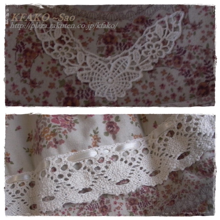 お気に入りの刺繍入りコーデュロイに、たっぷりとローズのレースを飾りました。品のあるナチュラルガーリースタイルに!!是非ご覧下さいませ。。。★Sao's HANDMADE☆ENTER☆★秋冬☆ローズレースのコーデュロイグラニー/刺繍/ガーリー*ハンドメイド*-【楽オク】