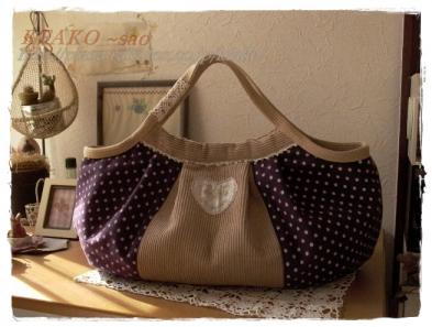 残暑が厳しい毎日に、ちょっぴり嫌気がさしてますぅ。。。雨もふらないなぁ。。。先日近隣の小中学校合同の、懇談会に出席し「震災時の避難所について」お話を伺って来ましたわ!仕事休んでまで、行くのかいって思っていたのですが、役員なので仕方なしに出席。ところが・・・超勉強になりました!!!地域ごとに自治会さんなんかの取り組みの熱心さも違うし避難所ごとに備蓄品とかも違うよう。。。そもそも、希望者全員は収容できないですよ!まずは、自己責任&各家庭でしっかりと災害に備えなくては!!と心から思いました☆また、万が一の時は、少しでも何かの役に立つ人間でいられるよう日々過ごさねば!と思いました。。。さて、9月も中旬。。。(暑いけどねぇ。。。)秋物バッグ、制作してます☆(ばかみたいに楽しいです(^O^))早速、ご入札いただいている方々、ホントにありがとうございます♪ツイード、コーデュロイなどの素材ですよ!こんな感じ♪ ↓オークションにてご購入頂けます☆詳細、ぜひご覧くださいませ→★Sao's HANDMADE☆ENTER☆★ちなみに、15日(土)1円スタート☆にて、「ローズモチーフのトート」を出品予定です。。。小花柄コーデュロイ&デニムを使ったタック入りバッグです♪合わせてよろしくお願いします☆応援の クリック おねがいします今日も良い日でありますように・・・