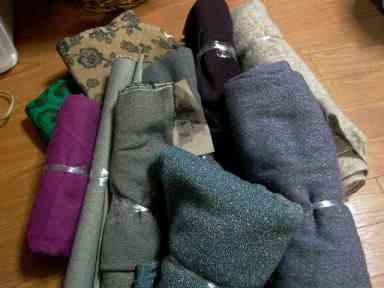 今日は、BOOK-OFF(~SUPERBAZAAR)で子供服でも買おうかな~と行ってみました。。。子だくさんだけど、年齢が離れていてほとんどお古がないのでたまにBOOK-OFFを覗いてみるんです。(150円とかで買えるからね!)あと、おもちゃもどうせすぐ壊れるor飽きるのでイベント以外の時は 不足分のみここで買う事が多いですよ。ちなみに今日は子供服を 冬物全5着で650円。おもちゃは 布絵本と押すと走る「トーマス」で600円。。。満足♪その後、雑貨なんかを物色してたら、中3の娘が「あっちに布とか めっちゃあるよ~」と冷めた口調で(私が布キチガイなので、いつも呆れている)教えてくれたの~!もう何度も行ってるお店なのに 気づかなかった。。。わりと上質そうなのばかりありましたわ!!!そして子供服より長い時間眺めて(っていうか、ひっくり返して)ゲットしてきたよ~♪ウール、コーデュロイ、手染め・・・などで合計3000円福袋より得した気分さ♪ただし、何メートルとか書いてないですけど。。。まだ広げていないけど(また散らかるので・・・)どれも充分活用できそうです☆そうそう、それとね、今日出品しようと仕上げたバッグ。。。黒のレースを合わせたいけど ちょっぴり甘さも欲しいなっと、フラップのケミカルレースをピンクに・・・イメージ通りにできたんですが・・・くたっとしすぎ(泣)もう少し厚い接着芯を貼るべ~。。。娘の卒業式があるし 自分で使います。。。ただいま 斜め掛け、2wayタイプのバッグを数点出品中ですたくさんのご入札 ほんとにありがとうSao'sHANDMADE ☆ENTER☆ご訪問 お待ちしています。。。応援の クリック おねがいします今日も良い日でありますように・・・