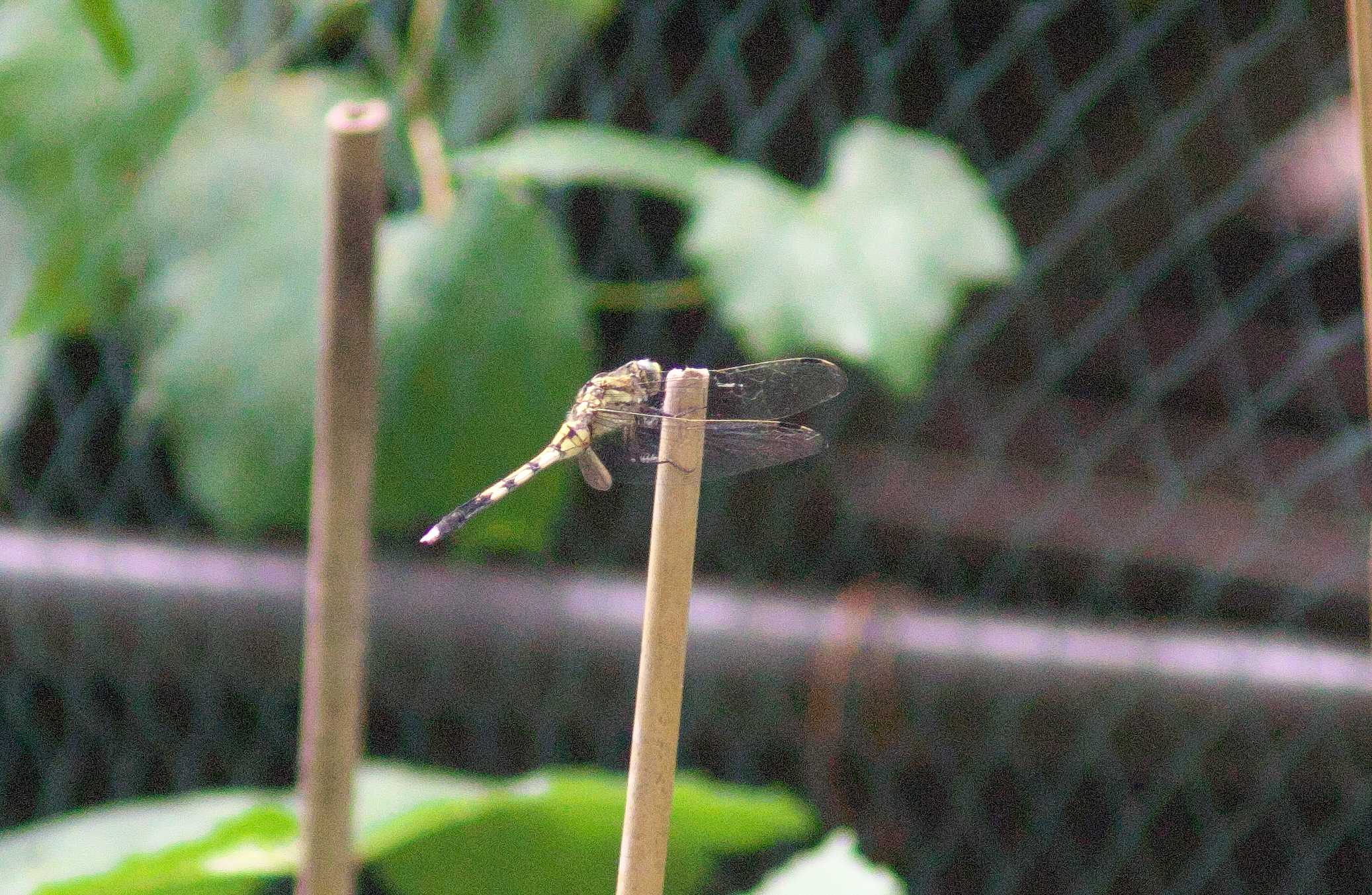 オクラの支柱にトンボが止まっているのを発見。昔なら、家の周辺には水田や小川、池などもあったのでトンボの類はごくごく普通に見られました。草原ではイトトンボも居たなぁ。トンボの幼虫世代が過ごせる場所は激減しましたが、それでもまだ生きながらえているようです。ちなみに、この黄色い体色のトンボ、通称ムギワラトンボと呼ばれますが、これはシオカラトンボの雌の個体(もしくは若い雄)で、同じ種類です。にほんブログ村