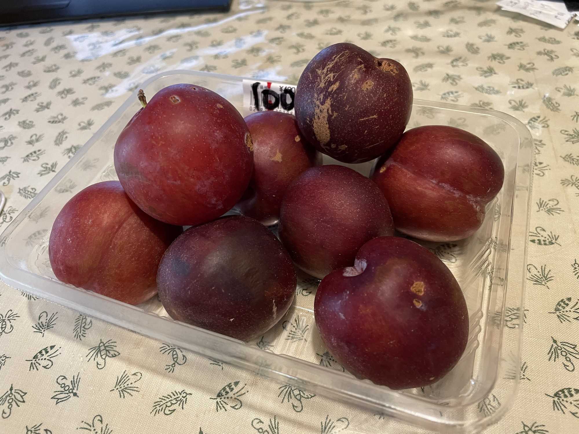介護だの、腰痛などで三つ峠に行けてません。腰痛はだいぶ良くなりつつありますがもう少し我慢です。この時期の山梨はおいしいものがたくさんあるんですよねぇ。桃を筆頭にスモモ、トウモロコシ、巨大化したキュウリなどなど。今年はどれとも縁がない問い思っていたのですが・・・よく行く八百屋での処分品のところに・・・・ソルダムが¥100!産地より安い!当然買います。売る側からするとぶよぶよになってきたスモモは商品価値がないのでしょうけど、食べる側からすると、その状態が最高です。ソロダムはどうしても皮部分の酸味が残りますが、全体が甘い果汁で充満している状態です。おいしくいただきました。昨日は¥100とはいかず、¥100引きでしたがサマーエンジェル2個と小さいのはまさかいまだに大石早生?当然買います。小粒のものも追熟完了で非常に甘く、スモモの苦手なカミさんにサマーエンジェルを食べさせたら「おいしい!」と言ってました。横浜だとスモモはマイナーなのでこういう出物があるのかもしれませんね。にほんブログ村