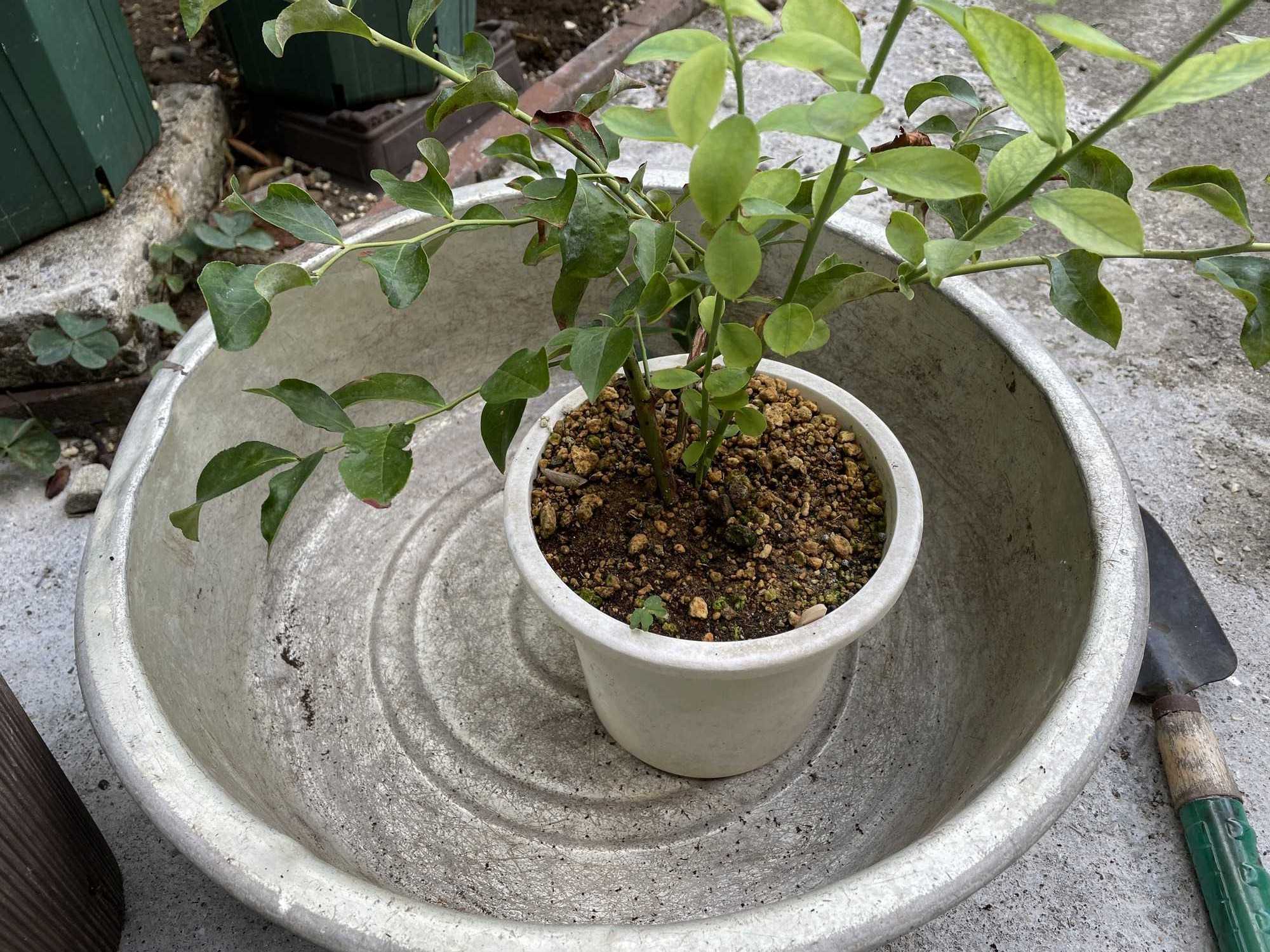 チャチャっと作ったスリット鉢をさっそく使います。というか、この株のために作ったのですから。新しい枝が続々と伸びてきています。そこがちょっと心配だったんですよね。今はよくても来春まではどうかなぁと。鉢から抜きました。根は下まで回っていますが、キチキチにまではなっていませんでした。熱いシーズンなので値を傷めないように多少崩した程度で入れ替えます。マグァンプK大粒を元肥にします。用土はいつものココピート+ピートモス+鹿沼土です。一回りほど大きな鉢になりました。水をたっぷり与えて完了です。ずいぶん徒長して横に広がっている枝は冬に選定して、切ったもので挿し木をするつもりです。新しい枝が縦方向に伸びているので樹形は変わってくるでしょうね。にほんブログ村
