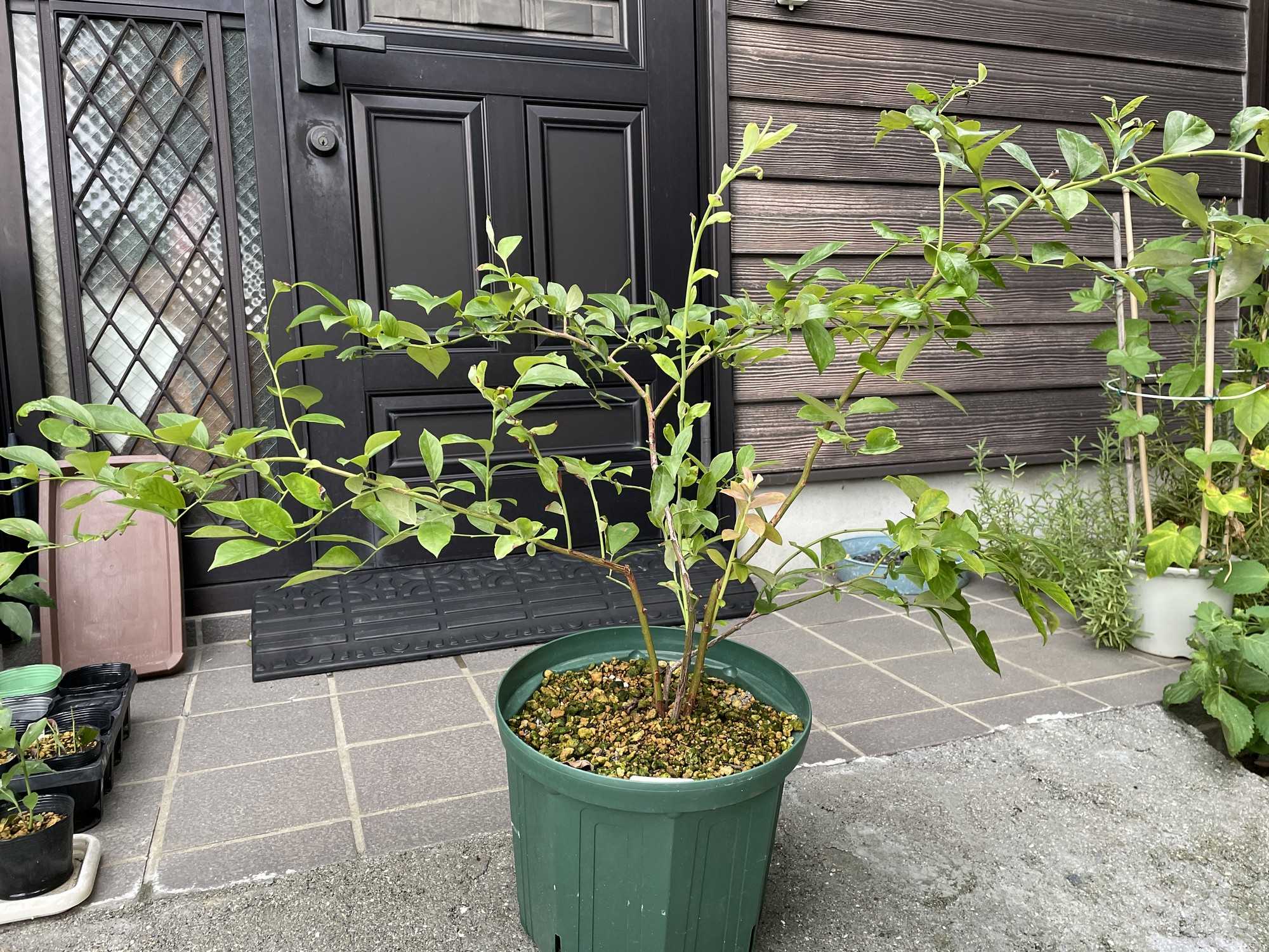 実をつけた株もつけなかった株も、この灼熱地獄の中新たな枝を伸ばしてきました。挿し木から2年目くらいですと、差し穂から伸びた枝が四方八方に伸びかっこ悪いのですが、真上に伸びる新梢を生かして樹形を整えていきます。こちらはホームベルですが、シュートが伸びてきました。このまま伸ばし古くなってきた枝と交代することができるかもしれません。鉢植えですからこまごまとしたことが大切なんですよね。にほんブログ村