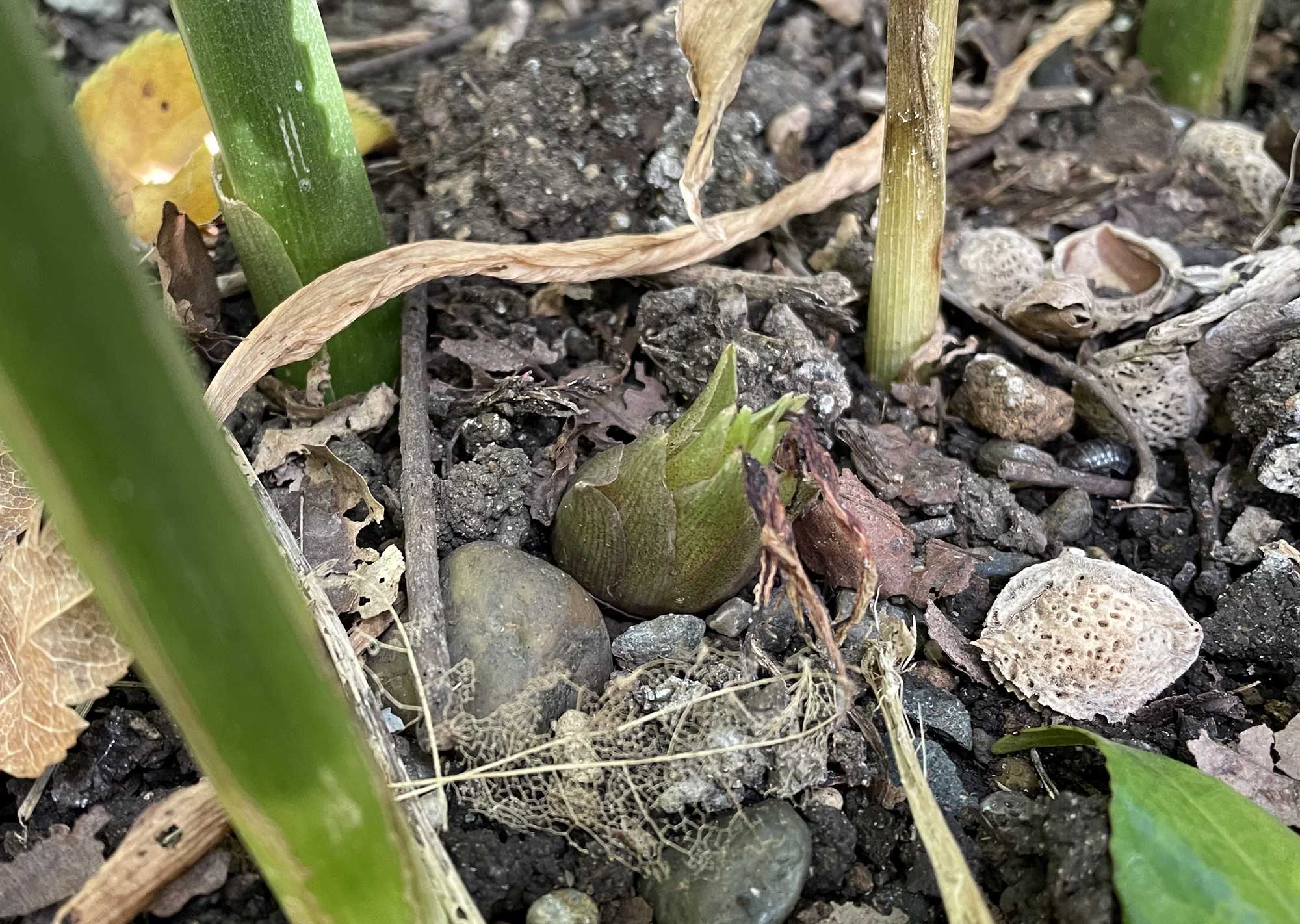 庭には3か所のミョウガの集団があります。三ッ峠から委嘱したグループが2か所。それと横須賀の某所でいただいてきたグループ。その横須賀グループの中にポツンと今季の初物を発見。やっと出てきたかという気持ちが強いですね。なかなか収穫できませんでしたから。ただ、気になっていたのが・・・一部で枯れだしてきていたんですよね。根腐れ?と思っていましたが・・・・・確認してみると、根腐れの真逆、干上がって枯れたのでした。このミョウガのある場所はある程度の面積は腐葉土を入れたりしてあったのですが、それよりも伸びていったものはほぼ荒れ地状態に侵入したわけで、保水力もろくにありませんでしたから。だったらもう少し広げて整備しようかなということで・・・続くにほんブログ村