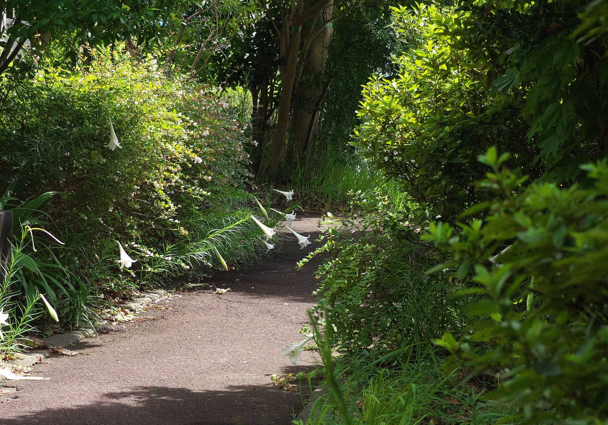 タカサゴユリの小径状態です。台湾原産のこのユリがここまで増えるとはだれも思わなかったでしょうね。ただ、微妙にヤマユリとは好む場所が違うようなのでヤマユリを駆逐することは無さそう。