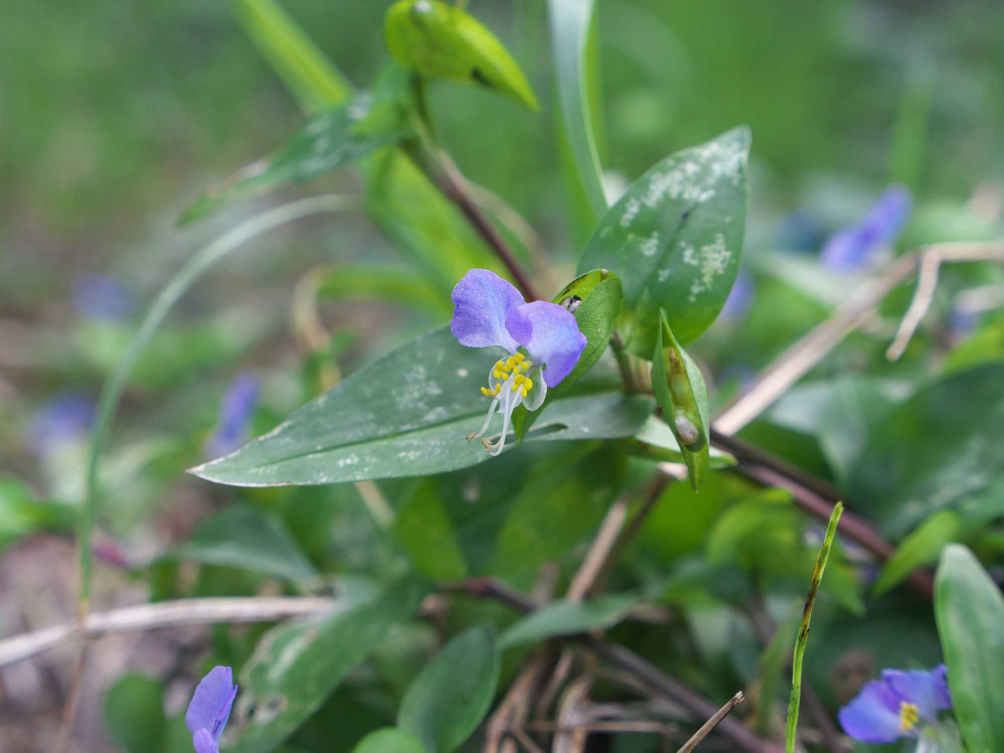 ツユクサによく似た花が咲いていました。よく見るとツユクサそのものですね。ただし花の色が薄いウスイロツユクサですね。