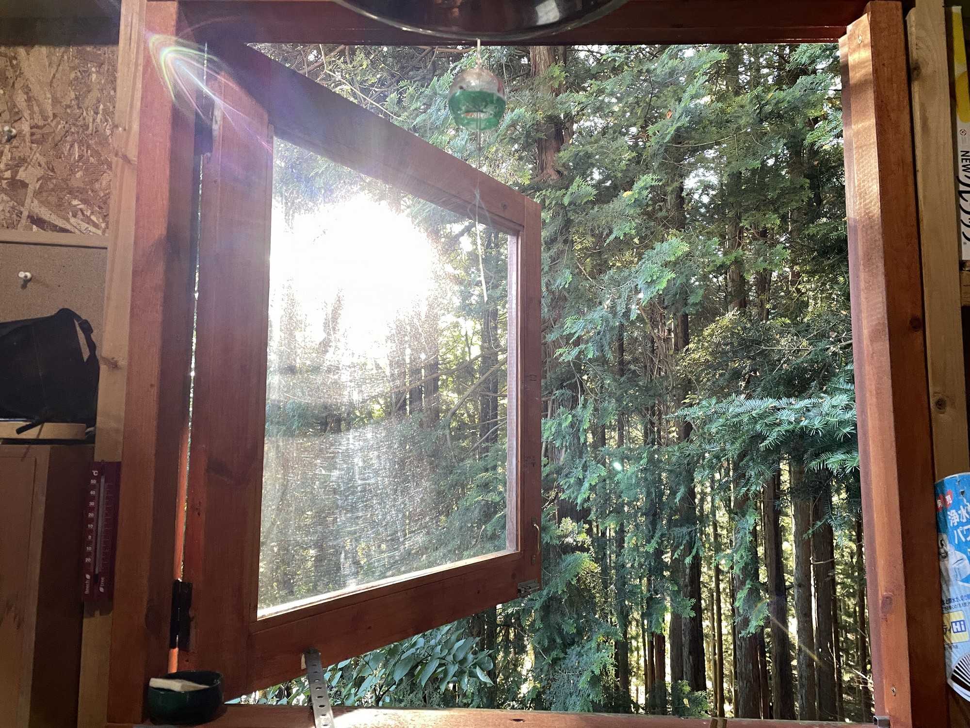 天気は快晴です。窓を開け放って朝食をとります。カーボンヒーターのおかげで足はぬくぬく。