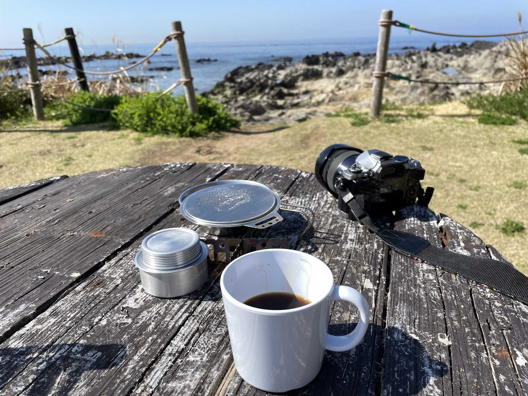 タカアシガニのマイルストーンのある場所でコーヒータイムです。