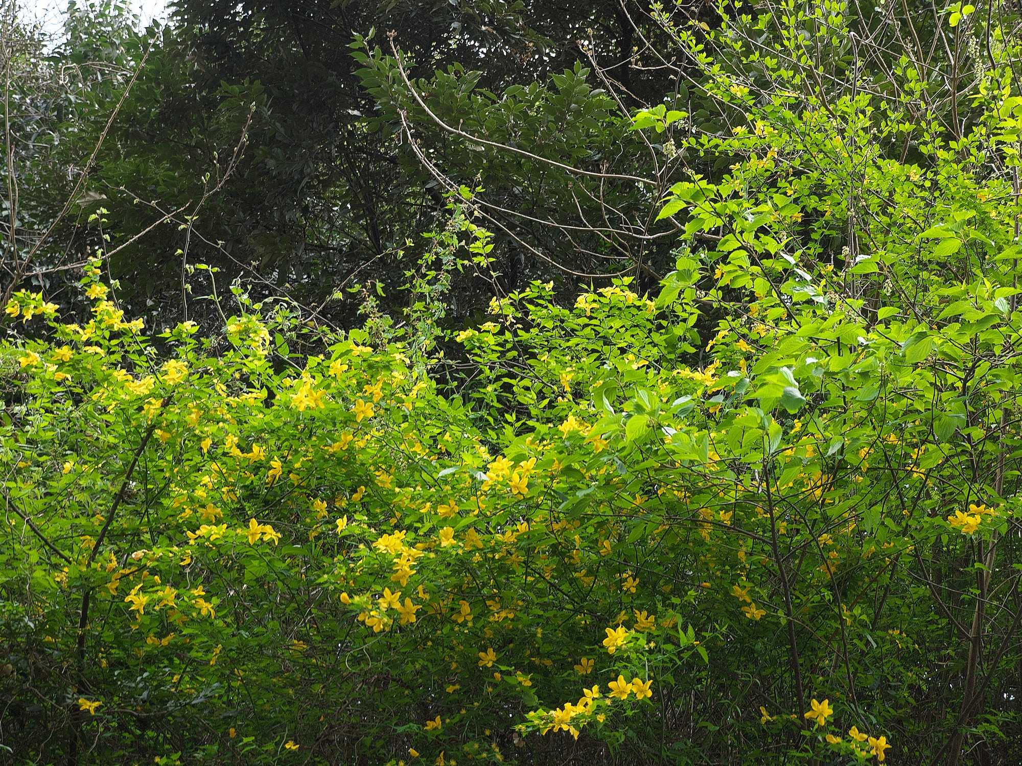 ヤマブキです。野生の八重咲ではないタイプです。結構な群落を形成しています。