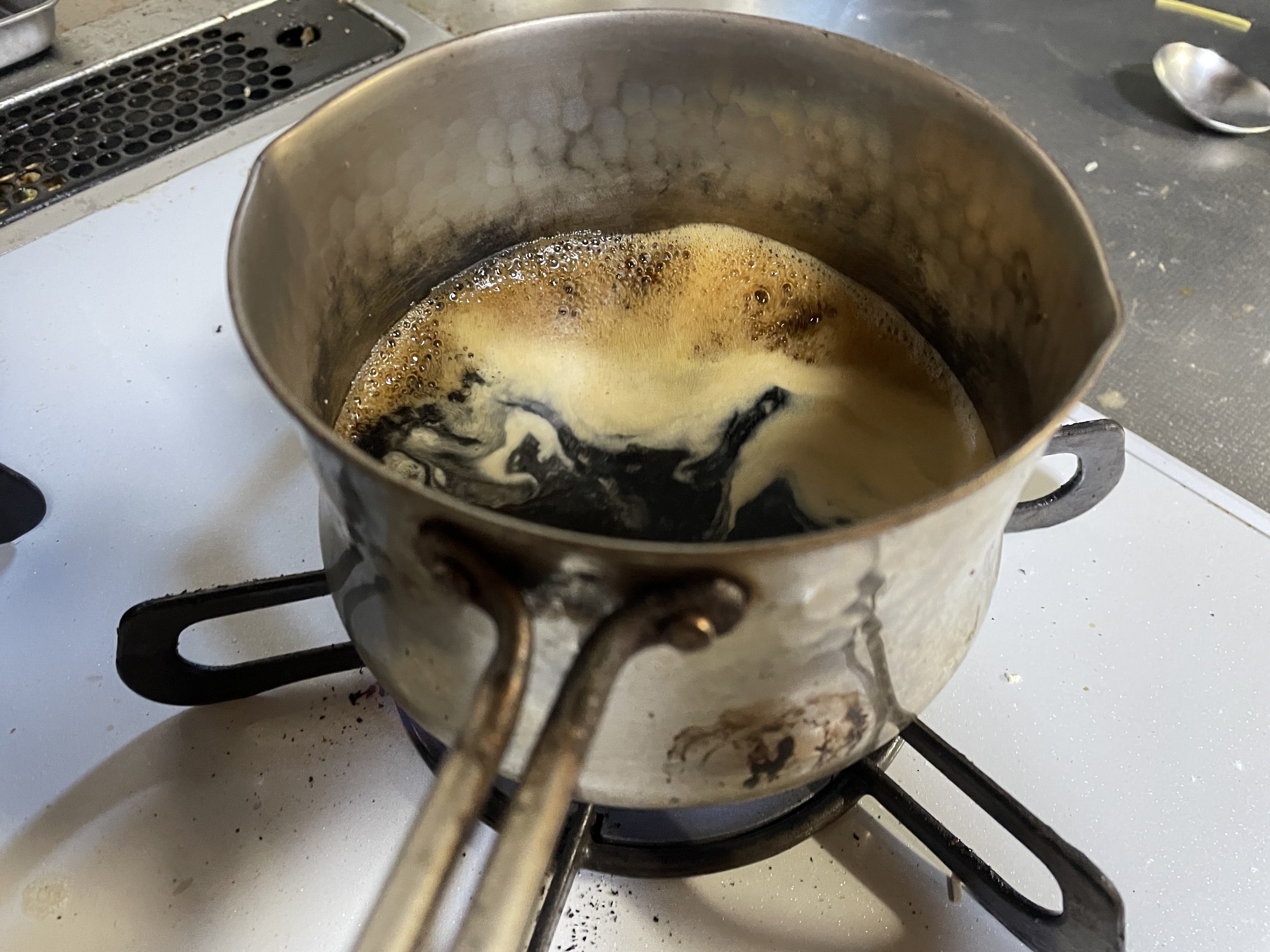 さて、たれ作りです。干し大根が750gでしたので・・・・醤油150ml、酢大匙5,砂糖大匙1.5で沸騰寸前まで加熱します。