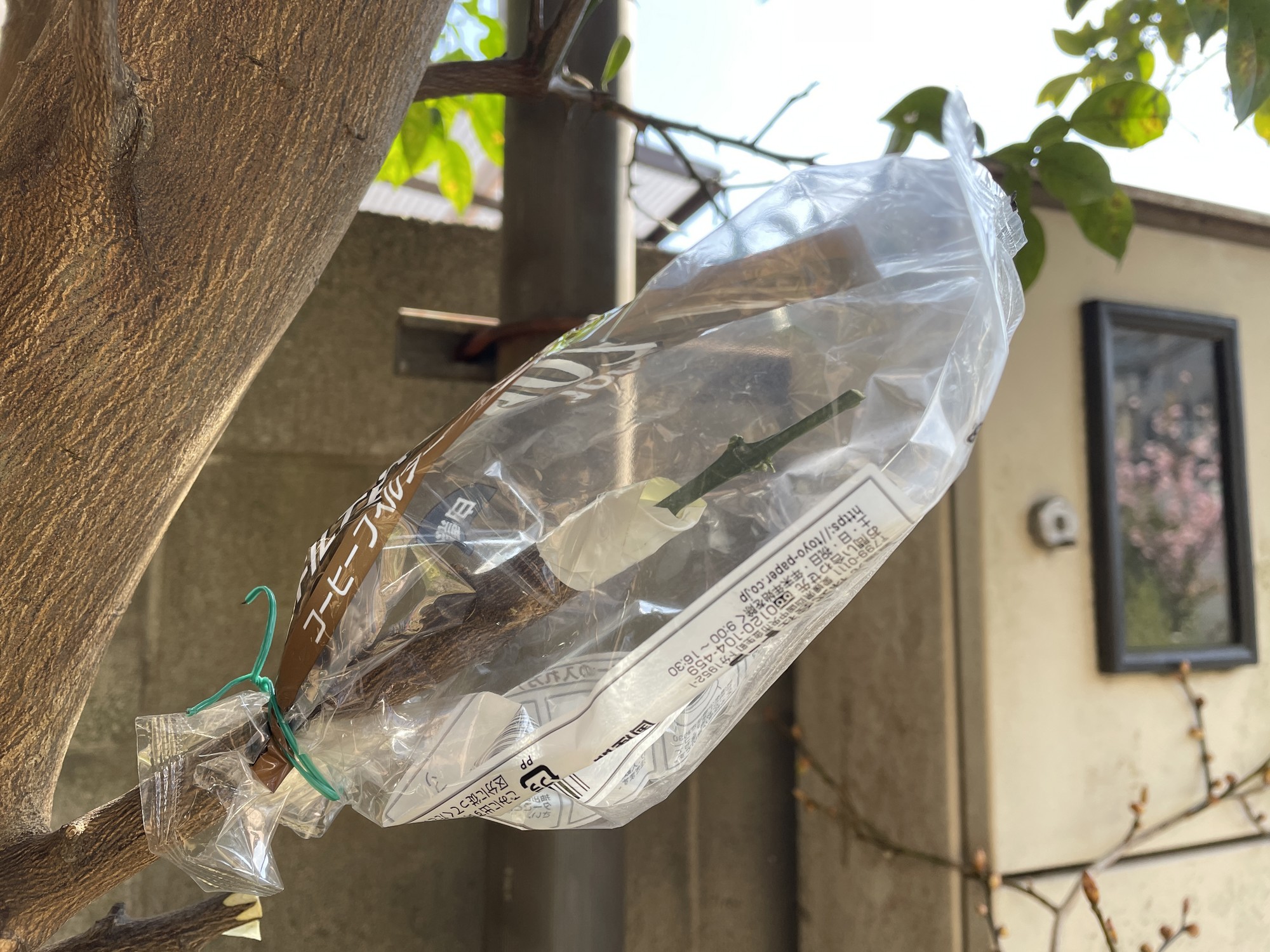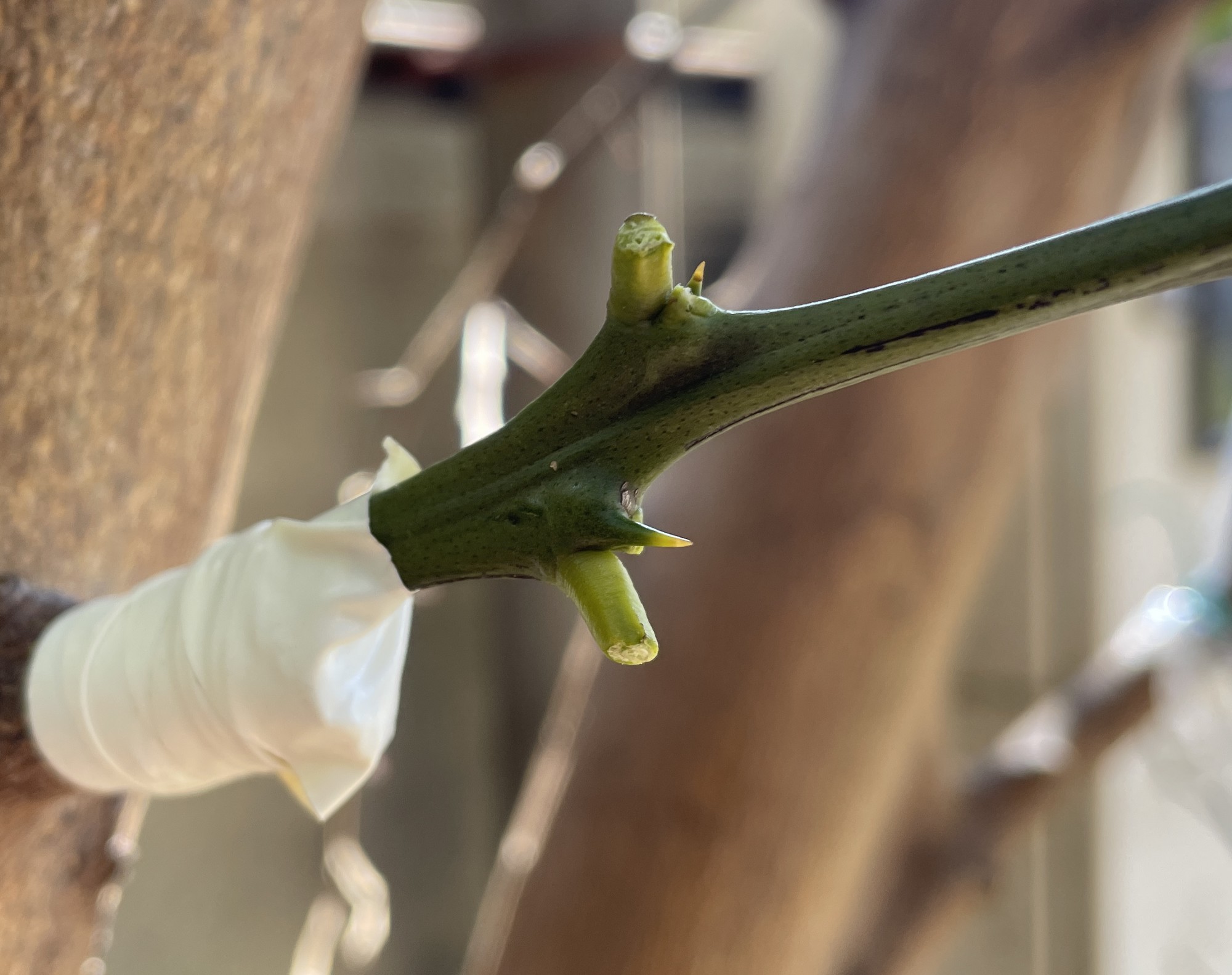 さっそく3本ほど接ぎ木をしてみます。接ぎ木用のテープではなく、絶縁テープで巻いてあります。