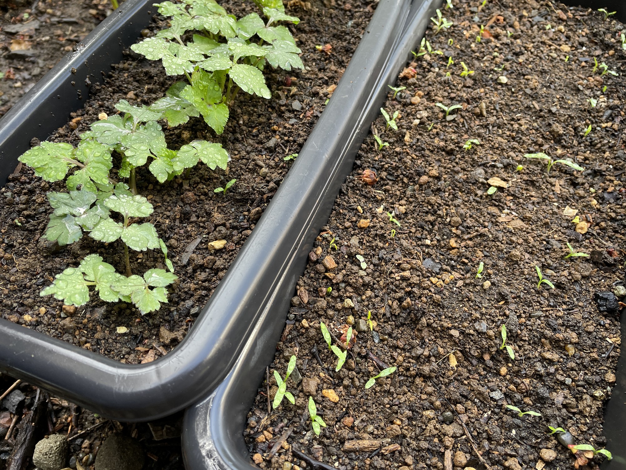 去年自家採種し 冷蔵庫の野菜室に保管してあったミツバの種。そろそろ蒔き時かと思いプランターに蒔いたのが2週間ほど前。
