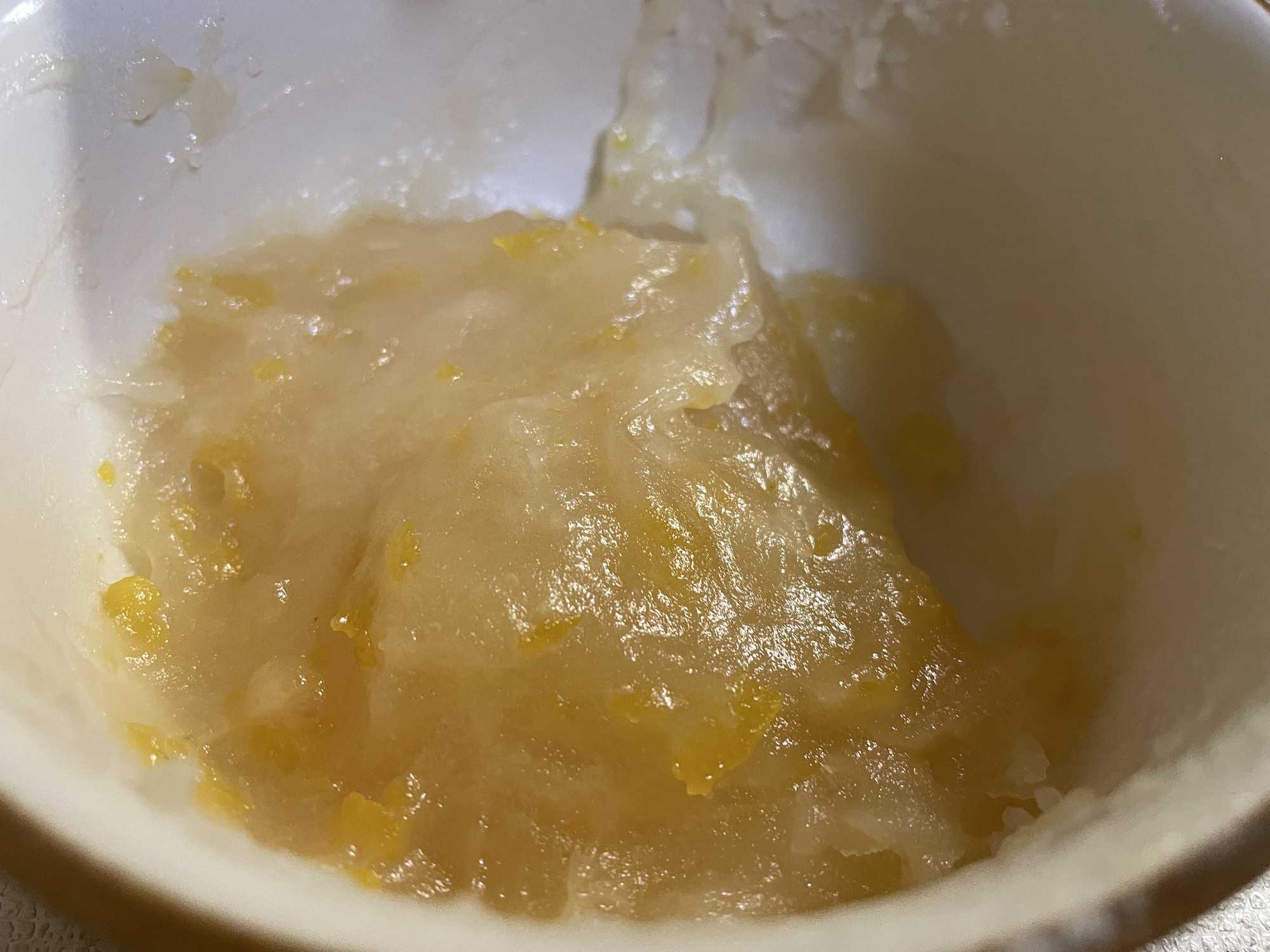 柚子ジャム大匙2,白玉粉50g、砂糖大匙3,水80mlの割合で耐熱容器でよく攪拌します。