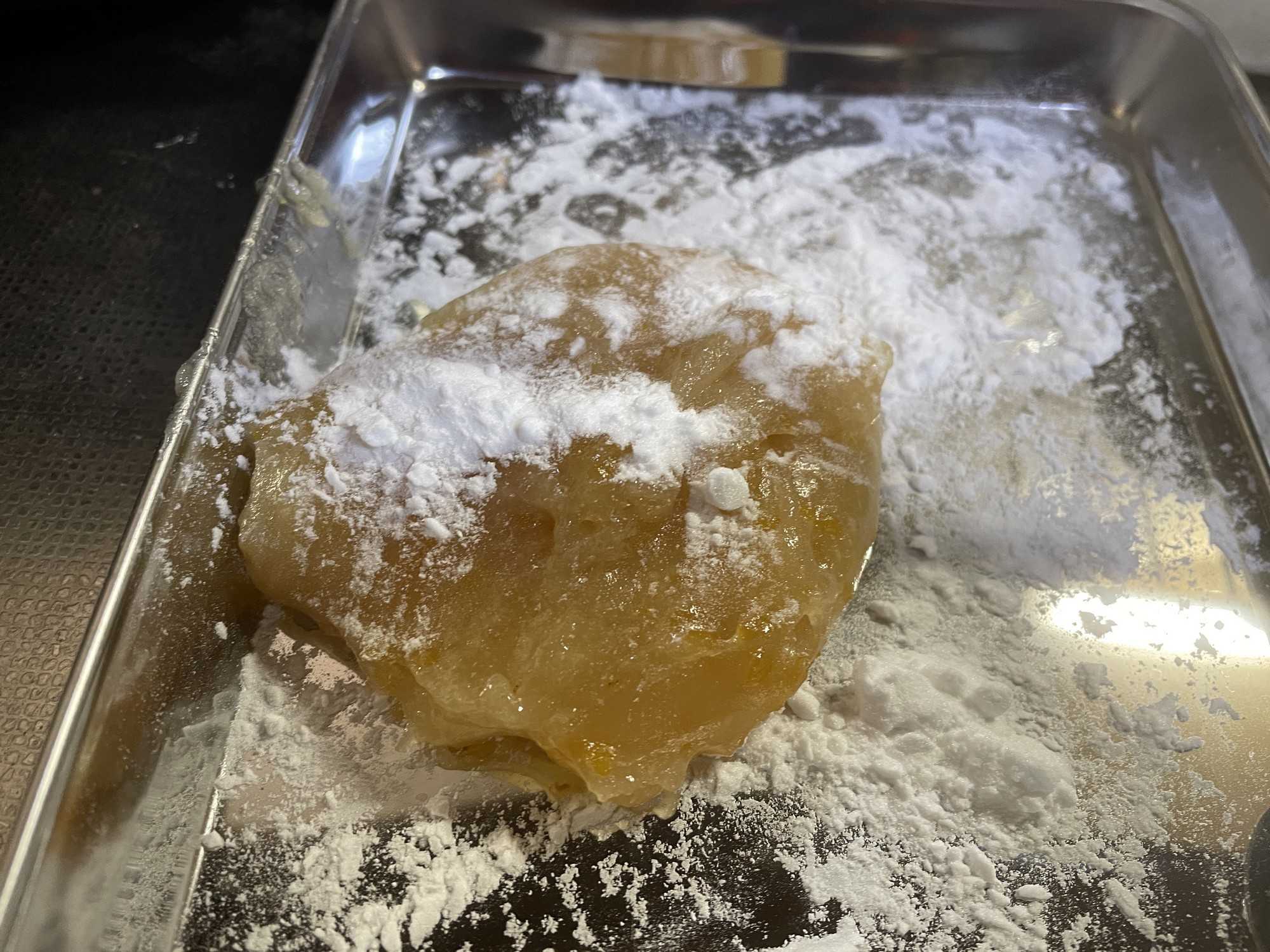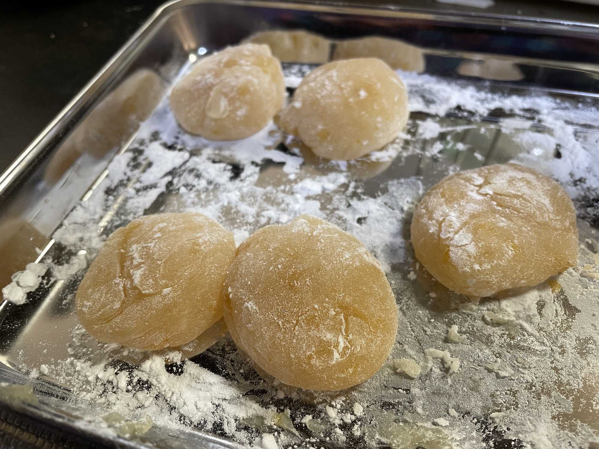 少し放冷したら僕は団子状態に丸めました。のしもちのようにして四角くカットする方法もあるようですね。完全に冷めたら完成です。