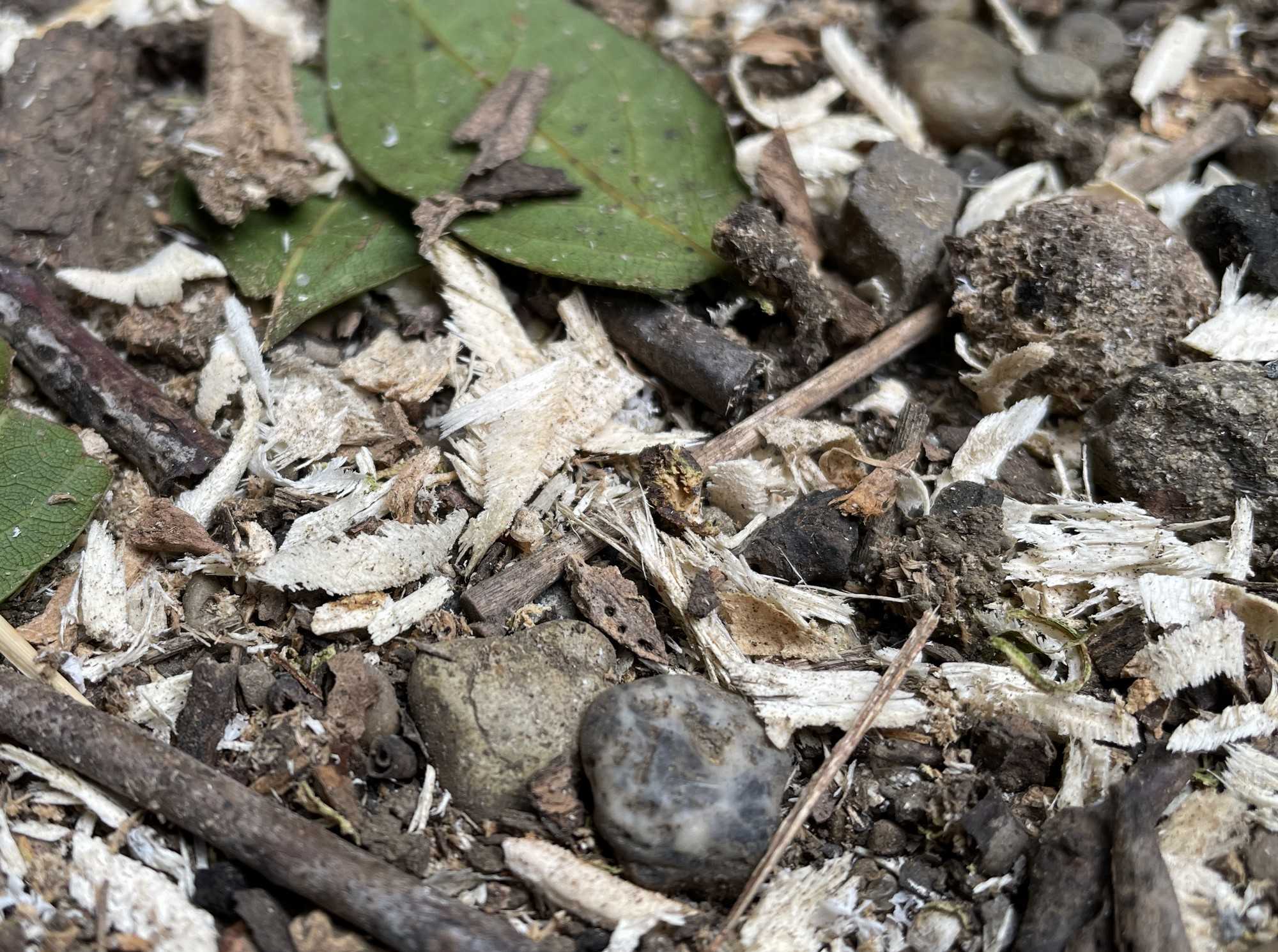 チェーンソーの目立てをしたおかげで、今までの切りカスと比べると大きく長くなりましたね。切れている感じがします。以前はもっと細かい破片でしたから。燻煙に使うアルダー材も安心して切れそうです。