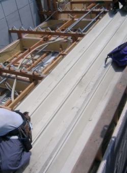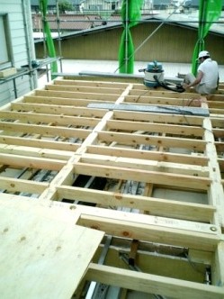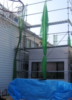 2日続けて雷雨です。今日は昨日に引き続き1階屋根をはがした後の2階床下地工事です。これはそんなに簡単な工事ではありません。既存建物は2階を乗せる事を予定していませんので2階を乗せるための構造上の補強や細工をしなければなりません。今日は2階床下地合板張りまで完成しました。合板のすべての継ぎ目は雷雨対策のテープで目張りをしました。それから木で下地を作ってブルーシートで勾配屋根を作りました。作り終えたら6時過ぎに雷雨です。雨漏り全くなく、今日は良かったと思っていたら。。。。いきなり突風、豪雨、雷。。。。。。。あれだけきちんと作ったブルーシート屋根が飛ばされる。。。。しばし呆然。。。。びしょびしょになりながらなすすべなし。。。。。。。。最悪、ついていない。。。。よりによって屋根をはがした2日間、突風豪雨なんて。。。10時まで、事後処理をしていました。。。でも雨漏れはしたようですが。。。。目張りが利いていて屋根裏は数か所程度、、それも少ししか漏れていませんでした。照明器具の隙間を伝わって雨漏れになってしまうようです。しかしついていないお祓いをした方が良いでしょうか?