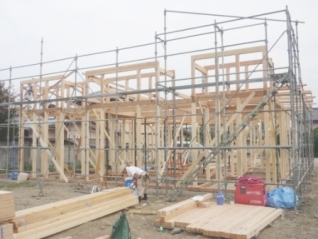 本日、建て方をしました。午前中は曇りで、あまり暑くなくクレーン車も入っているので順調に上棟が出来ました。