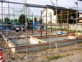 本日より工事が再開です。お盆期間中の晴天のおかげで基礎の水溜りは乾いてしまいました。本日は土台敷きをしました。基礎パッキンを布設してあります。あまりに天気が良く良すぎて熱中症になりそうです。。。明日からはクレーンを入れて建て方が始まります。。。。。。