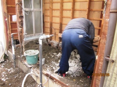 外部基礎部分からお風呂の水漏れが有ったので古いお風呂をユニットバスに改修致しました。水の影響で浴室内部の木には白蟻が巣を作っていました。悪い木部をほとんど新しい物に取替え防蟻処理をしてユニットバスを設置致しました。解体補修工事中柱が腐って途中から有りません。特に土台下は腐ってぐじゃぐじゃです。解体中完成外部LIXILユニットバス完成