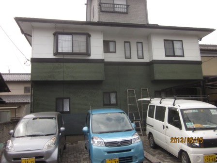 関東も梅雨に突入いたしましたが梅雨が来る前に塗装工事が完了しました。塗替え前高圧洗浄中工事中塗り替え中完成致しました。グリーンの特注色です。塗料はエスケー化研のセラミクリーンです。