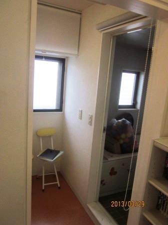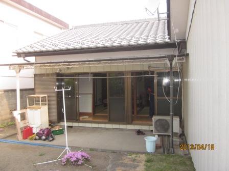 サンルームの取り付けを致しました。LIXILほせんるんです2幅2.5間 x 奥行6尺(W4550mmxD1820mm)屋根熱線吸収ポリカ、床フローリング張り換気扇、カーテンレール、吊り物干し掛施工前完成居間から見たサンルーム内部