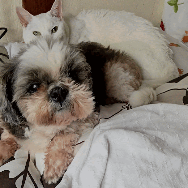 前のお母さんがお亡くなりになって、兄妹犬たちとも別れて、最初は少し分離不安気味だったのがメンタル面でキンちゃんにお世話してもらって、だんだん落ち着いてきています。