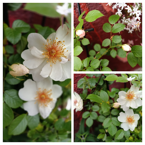 チーム白ということで、うちの薔薇たちの中で2番目に咲いてくれたジャクリーヌ・デュ・プレ。