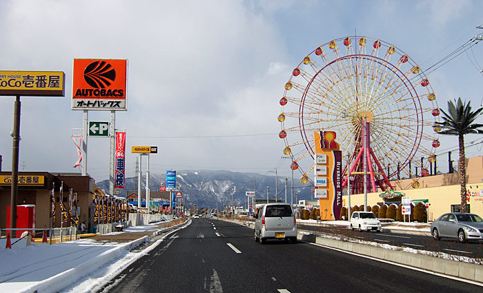 今帰ってきました。外は、ものすごく寒かったです。今日の写真は・・向こうに見える山が池田山です。あの山の麓に、住んでます・・右側にある建物が、リバーサイドモールです。ここは、映画館、若者向きのショッピング、それと温泉。夜、11時を過ぎても、駐車場はいっぱいです。ちょうど、岐阜市から、西を向いて走っているところです。さて、お勧めは・・青春とはなんだ 今でも、たまに、口ずさむことがあります。知ってますか?