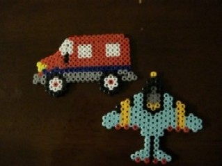 Have you ever heard of"Perler Beads" ??(Click here for more details)It's called 'ironing beas" in Japan.Perhaps, it's called Hama Beads in Europe.Noel is so much into these and made so many things past months.I thought it was girls stuff so I made him wait until his"Perler Beads Fever" was gone but I was wrong.Since I saw him working on it so hard with his elder girlfriend, Miho, aged 6, I thought it wasn't only for the girls but also for him.His first a piece of work was an airplane.I helped him a lot but he picked the color.Then, he worked on making a car all by himself.I thought it was great.He made another 3 cars in different colors and designs,made a yacht, and some hearts at Miho's house.Cole, aged 2 usually made Noel mad because he dumped all the bead on the floor,scared us with putting beads into his mouth,he sometimes broke what Noel made...etcbut now Cole understand what he needs to do and he actually tries to make something.What a change!I made a yacht for Cole but wow, it was a lot of work.Harris also tried and he was amazed how Noah concentrates hours with this.Usually concentration at Noels age would be like 15min or so. Noel wouldn't be the exception but not with Perler beads.He is now working of his Grandmother's(my mother)light blue colored car and also he wants to make something else byChristmas. Let's see what it will be.I'm glad we bought these for the kids.