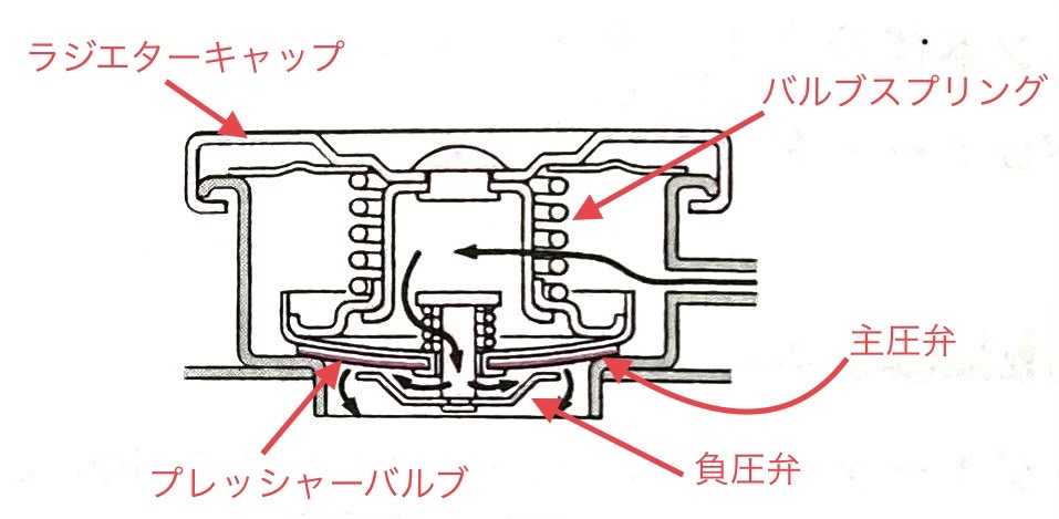 https://plaza.rakuten.co.jp/kihal/diary/202308020000/の続きとなりますが、冷却系統の中で「ラジエターキャップ」も重要な部品です。ラジエターキャップは主圧弁と負圧弁の働きにより、ラジエター内の圧力を適正に保ちます。水温が高温になり圧力が高くなると、ラジエターキャップ内の主圧弁が作動し圧力を調整します。また水温が下がり低圧になると、負圧弁が作動してラジエター内の圧力を適正に保ちます。したがって、ラジエターキャップ内側の 「シールの劣化・変形」 「シールの破 損」「汚れ・サビ・ 付着物」 等により主圧弁、 負圧弁の動作が悪くなり最悪の場合オーバーヒートの原因となります。ラジエターアッパーホースが潰れている場合などの症状がある場合などは、バルブの変形や劣化が無いか見てみましょう。エンジンが暖まっている時は高温になっていて、ラジエターキャップを外した瞬間に高温の冷却水が吹き出すので、注意しましょう。