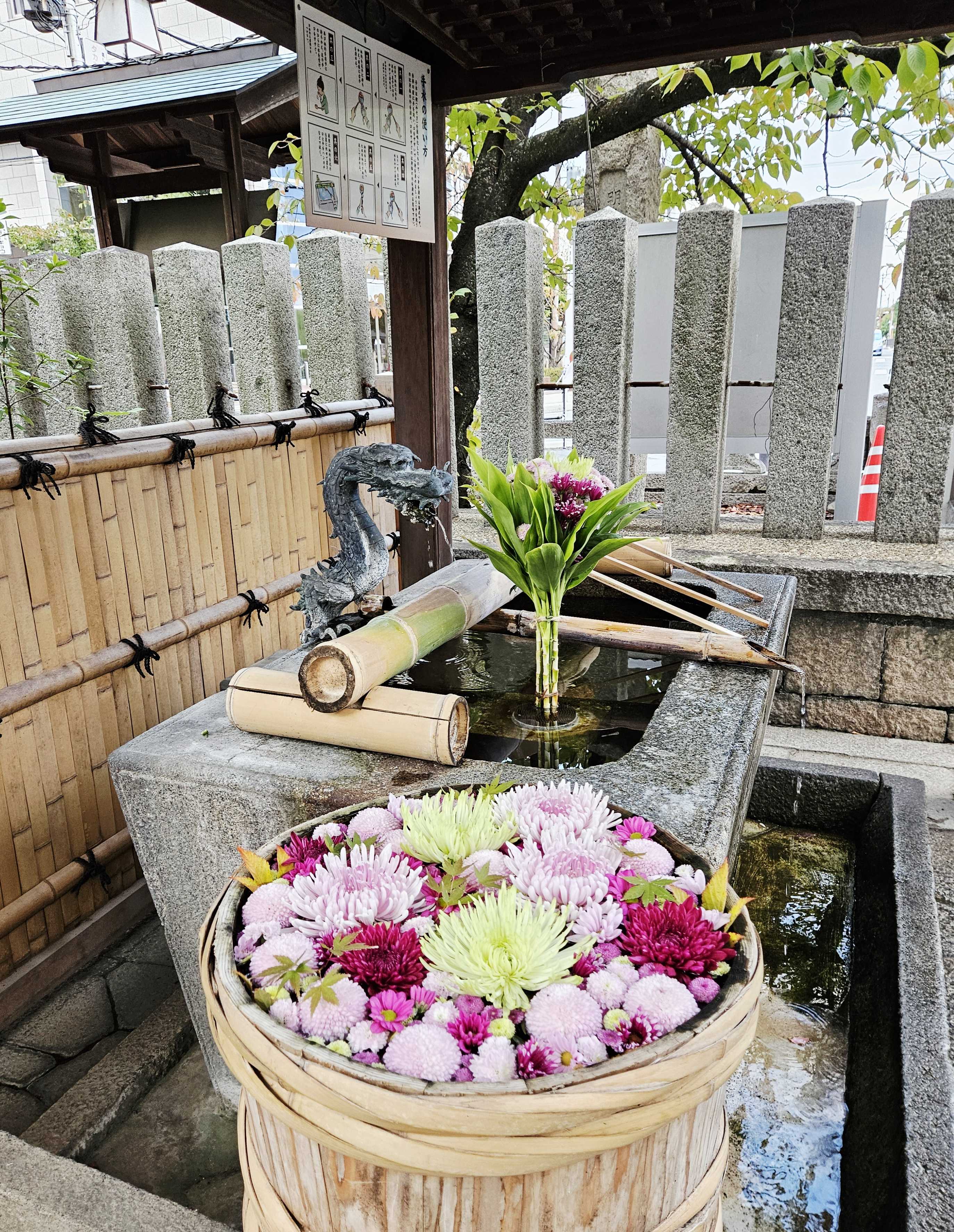 優しい色合い秋らしく菊が主役華やかでいいですね😊空気が冷たく感じますがお天気もよく気持ち良い1日青もみじも綺麗です境内を気持ちよく歩き参拝できました七五三 ご祈祷が終わり着物姿の家族がいらっしゃいました😊感謝して帰ります