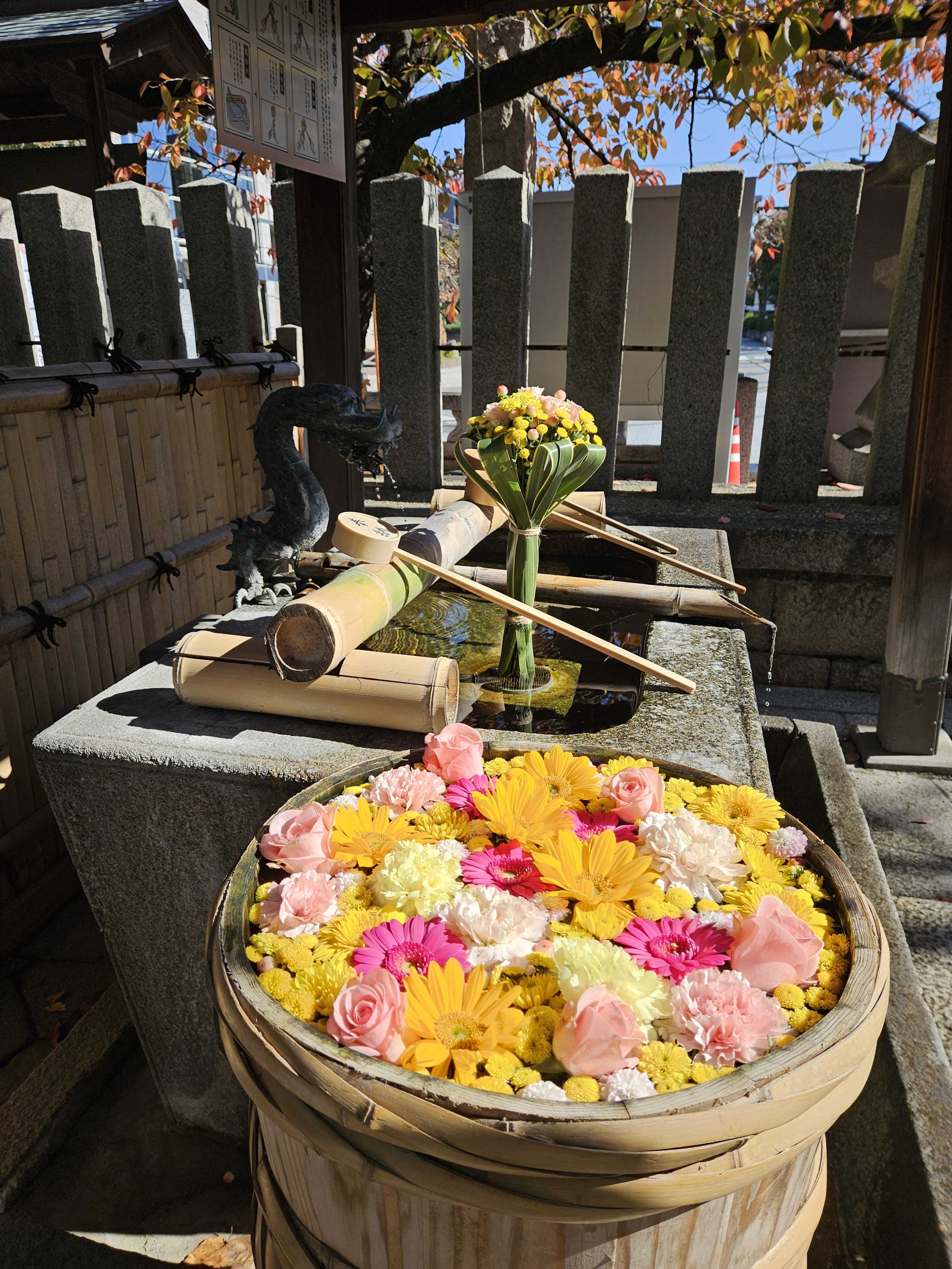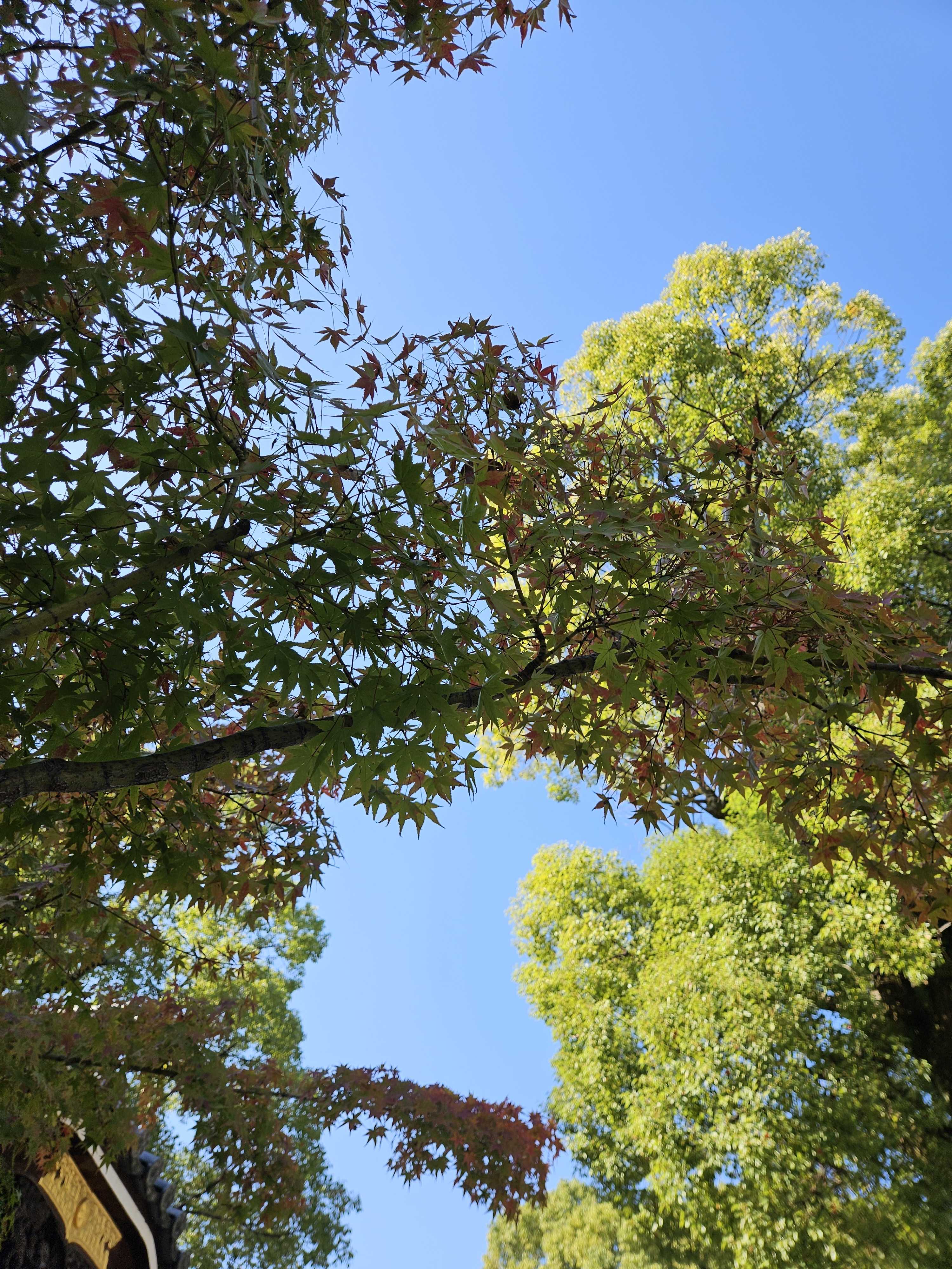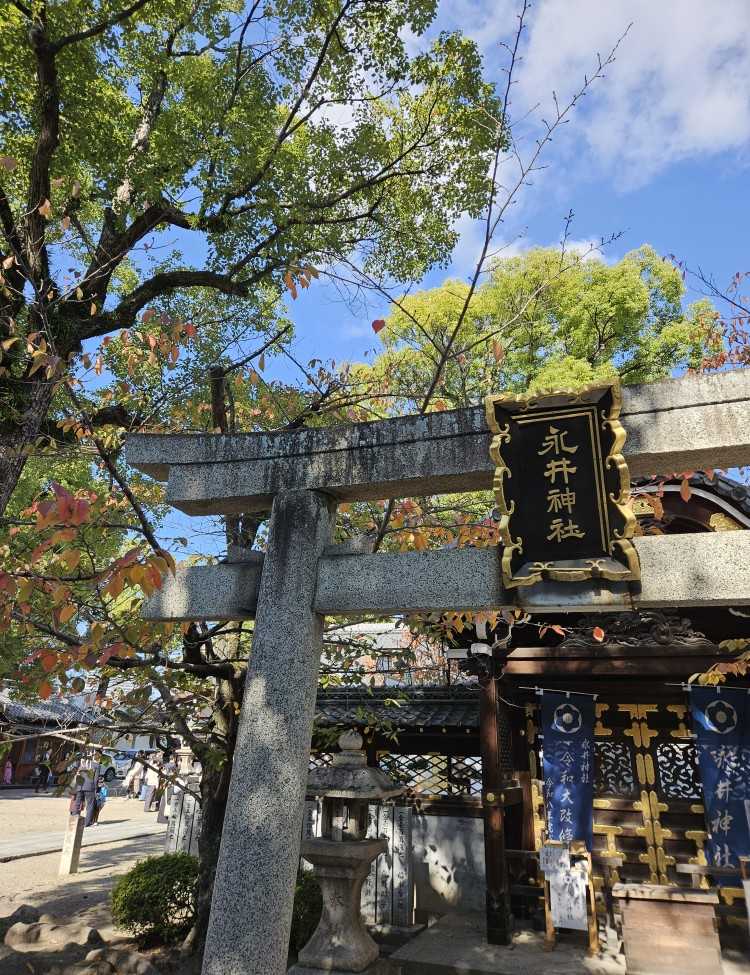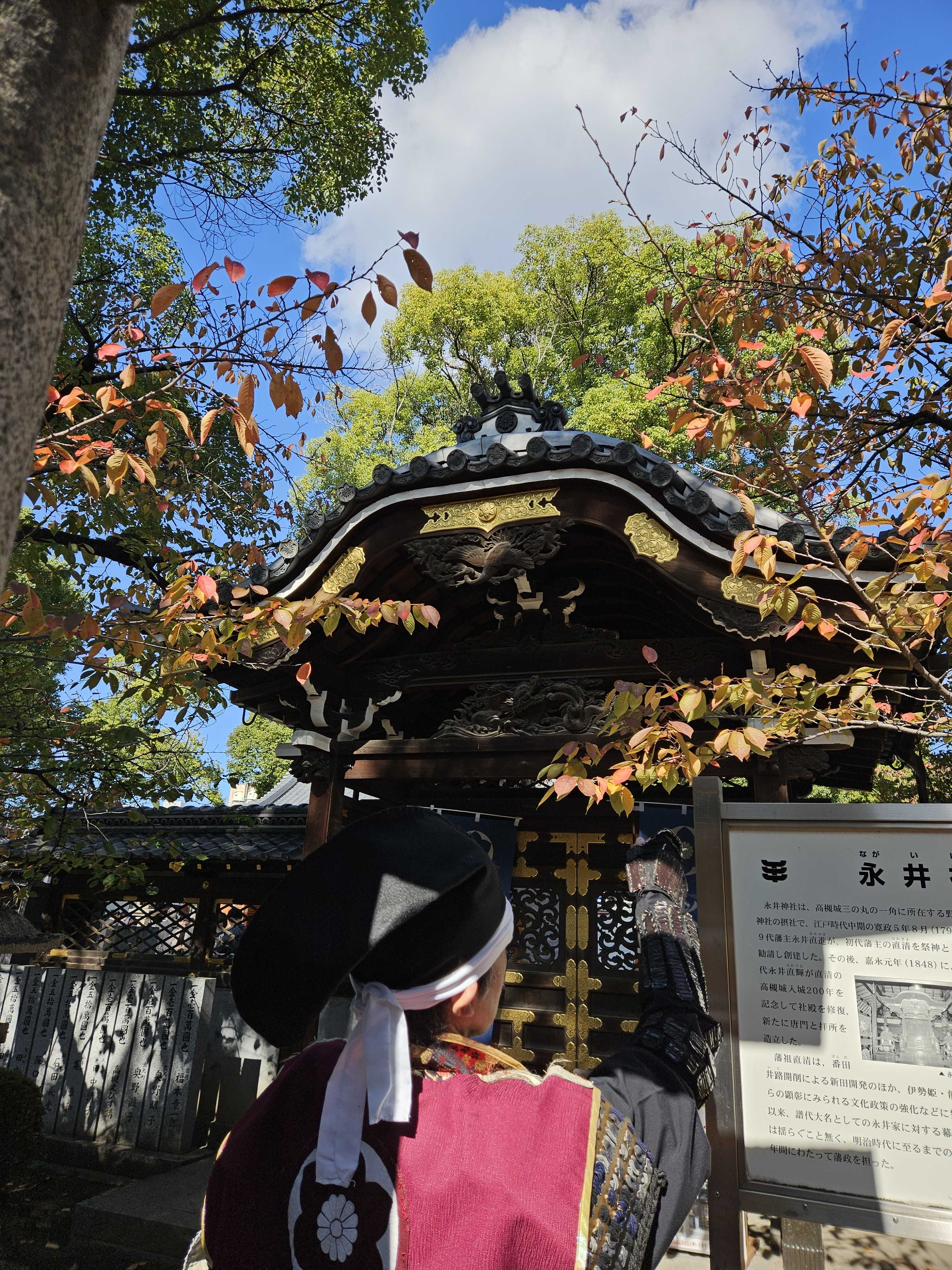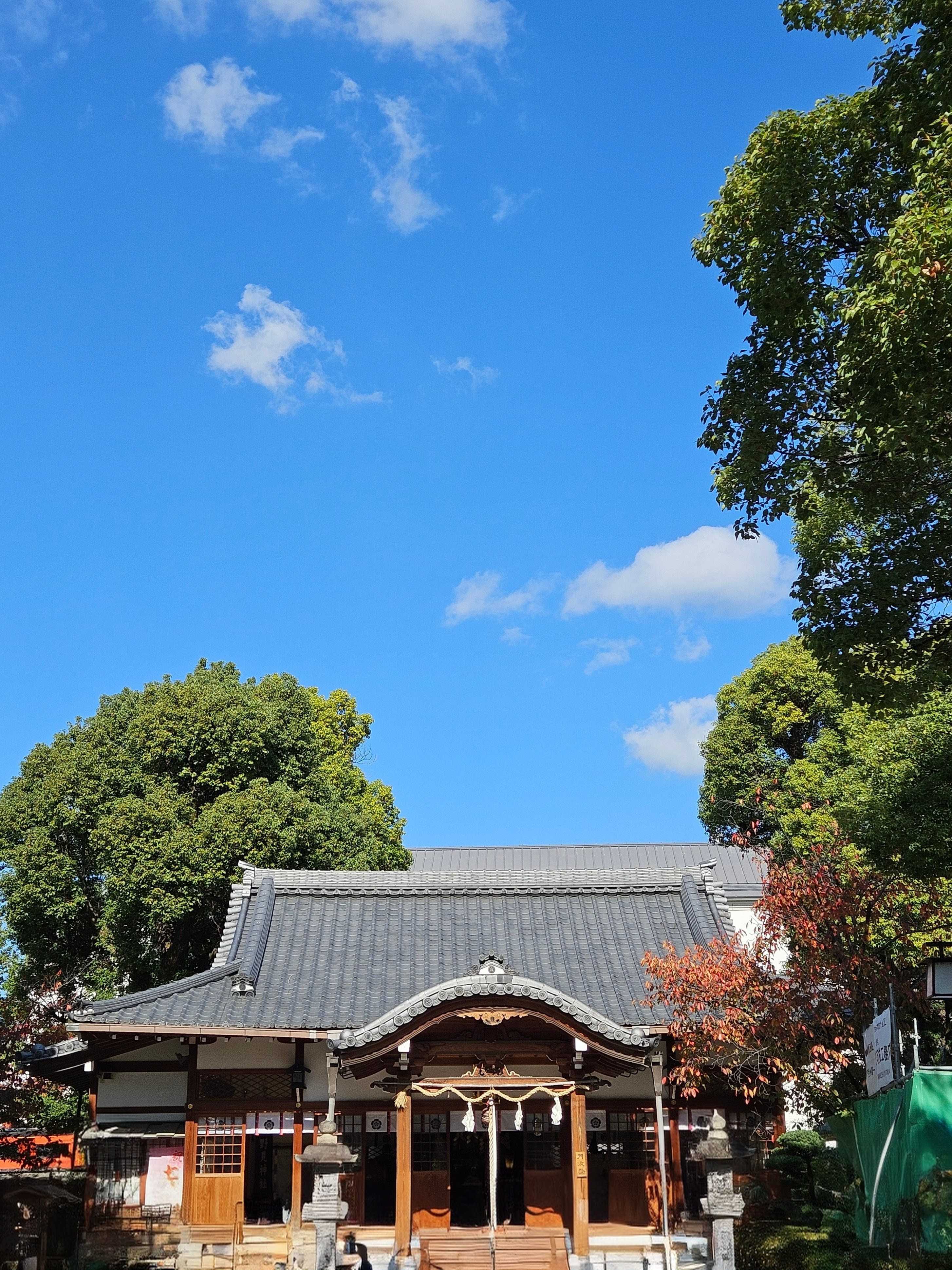 鮮やかで優しさを感じる色合い青もみじが綺麗で少しずつ紅葉が🍁癒される空間です七五三日和ですね!本殿で祈祷されている家族で賑わっていました⛩️参拝できて良かった境内を歩いていると甲冑を着た人(高槻藩主 永井直清)と出会う永井神社は修復工事中来年の春完成予定だそうです