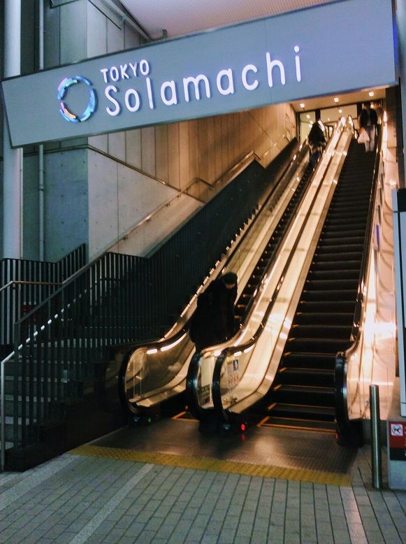 カフェの先へ進むとソラマチのエスカレーター