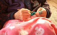 確か去年の花見だった私が実家に帰ったのは。叔母の家には大きな桜があって毎年そこに集う、恒例行事。まだバァがウチに来る前のこと。それ以来帰っていない。高速にのって車で2時間の距離が遠くなった。それでもやっぱり親の顔が見たい。今日明日、私は1泊の予定で実家に帰る。昨日のうちに、バァには郷が隣の県にあること、明日帰りたい旨を伝えた。「うんうん、行っといで」「バァは明日お泊まりに行ってくれる?」「行かないかんのか?」「ご飯も作ってくれるし、おむつも替えてくれる。 バァに優しくしてね、って頼んでおくから」「・・・・・・ウン、わかった」その前日私がコタツでウトウトしてるときダーリンもバァにショートのことを伝えた。ウトウトしながらはっきり聞こえた。「イヤじゃ。メシも自分で炊く、 自分のことは自分でできる」そんなバァをショートに預けて実家に帰るのはやっぱり気が引ける帰らまいか、とも思う。でも実家で楽しみにしている親の顔が浮かぶ。ここはバァに辛抱してもらおう。たった1泊だから。お腹の調子はすっかり良くなった。食欲もある。体調は心配ないだろう。初めてのショートでちょっと芽生えた不信感はケアマネさんが問い合わせてくださり多少払拭されたが、「地獄じゃった」というバァのセリフも気に掛かる。月曜日にケアマネさんが様子を見にいってくださるとのこと。心強いバァの編み物はいっこうに進みそうにないのでバァの帽子は私が編んだ。「ヘンな帽子~」ダーリン、バカウケ。バァは鏡をのぞき、まんざらでもなさそう。「どんぐりみたいでカワイイ~」というと「ウンウン、どんぶりみたいじゃ」どんぶり…そう見えなくもない。個性派だが、なかなか似合う「今日、この帽子をかぶって行く」バァはそう言った。