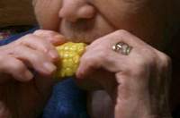 今日のおやつは好物のとうもろこし。一生懸命かぶりつくバァの図はなかなかに頼もしいookinahituji3さんに教えてもらった足湯を夜に朝にと試し、koalakoalaさんのアドバイス通り足にクッションを当てて寝させたら、立てないくらいに痛がっていたひざが治った血行不良だったよう。椅子から立ったり座ったりももう自分でできる。なんて早い復活几帳面なバァは、ポロポロこぼしたとうもろこしの粒が気になるらしい。椅子から下りて床にしゃがみこんで拾っている。・・・・と思ったら次に見たときには、そのまま床にゴロンと横になっていた起こそうと駆けよったが、近くまで行って思い直す。私も隣で床にゴロンと横になった。ここ、台所の床はヒンヤリして気持ちいい。バァと床に向き合って寝たままで、とりとめもなく話す。バァは、すぐ手の届くところにあった野菜カゴからキュウリを取りだす。「これ食うたらここで寝たままでもええのう」な、なんて不精な「ワシは3本は食える」微妙なサバイバル「ここで寝よったら、 帰ってきたらビックリするかのう」そうダーリンのことを言いながらバァはいたずらっ子のようにイヒヒと笑った。・・・あたりから私には記憶がない窓から入る風も気持ちよくて、ついウトウト。案の定、帰宅したダーリンは台所に倒れている2人を見て大いに驚いた夕飯時にバァはご機嫌な様子で赤ワインを3杯といってもお猪口大の小さなワイングラス。そして今マイブームなのはこれパッケージのかわいさに一目惚れしたのがビンゴバァもお気に入り夕飯を完食した上にワインのあてに軽くつまむ。