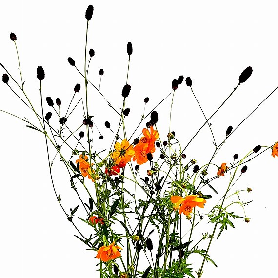 線を表す枝ものと花ものを