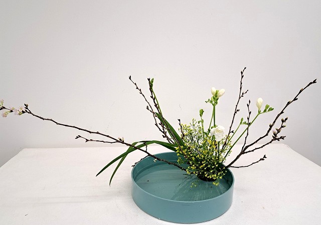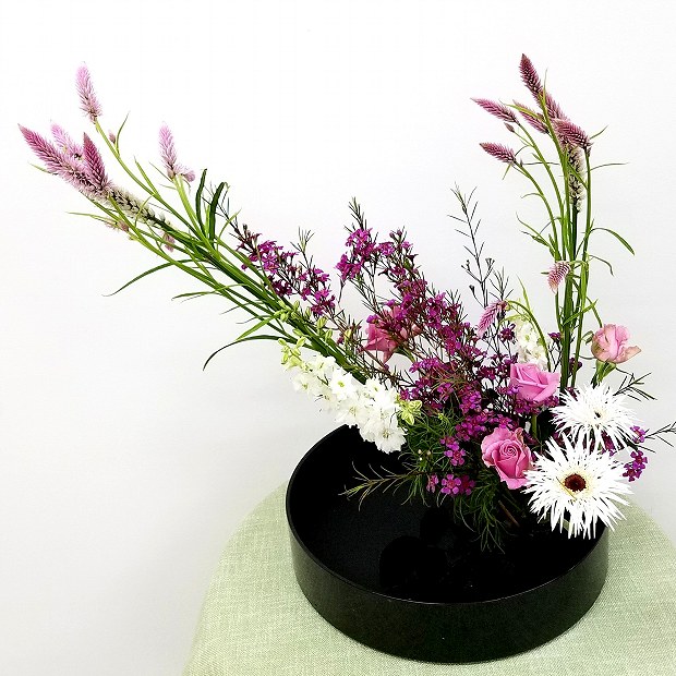 剣山を使って水盤にいける盛り花です。