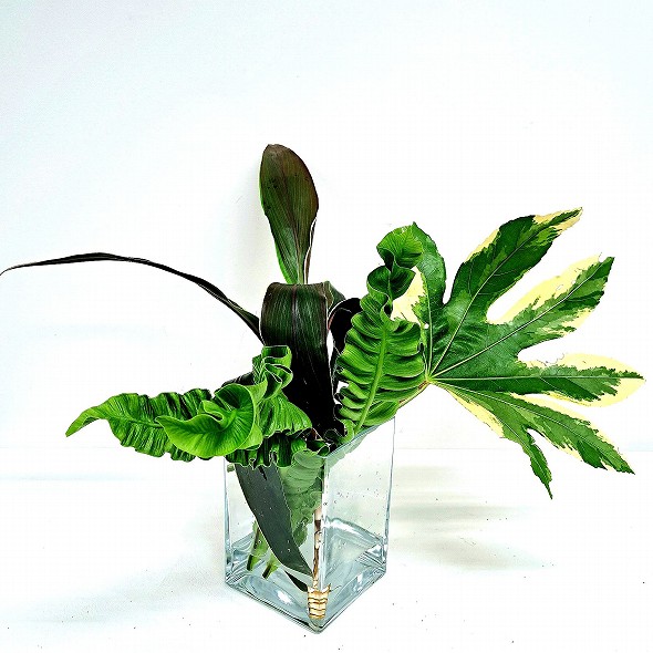 花と別な種類の葉物(はもの)は、アクセントになります。