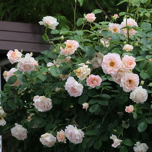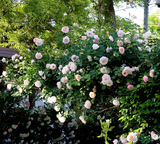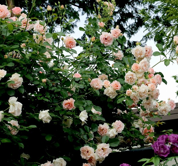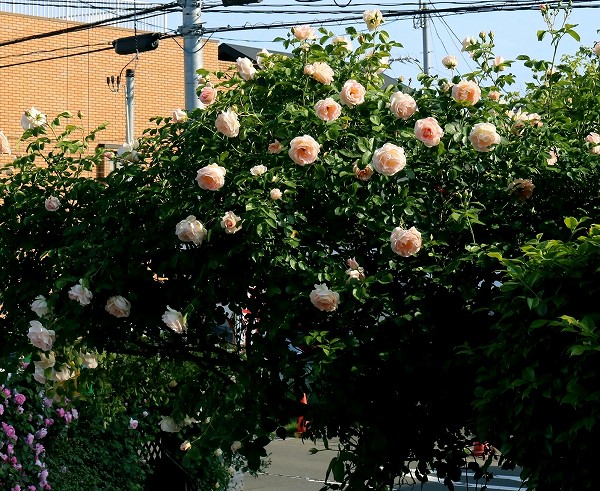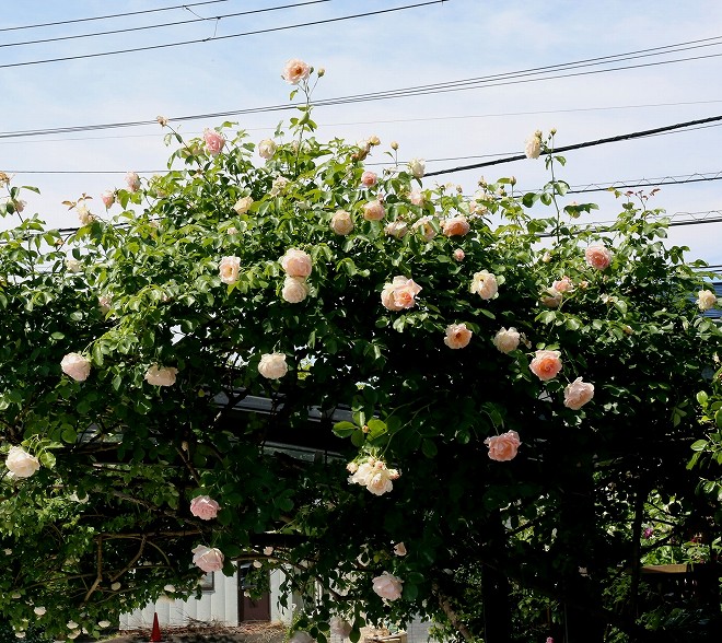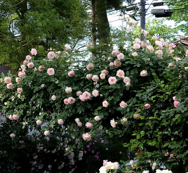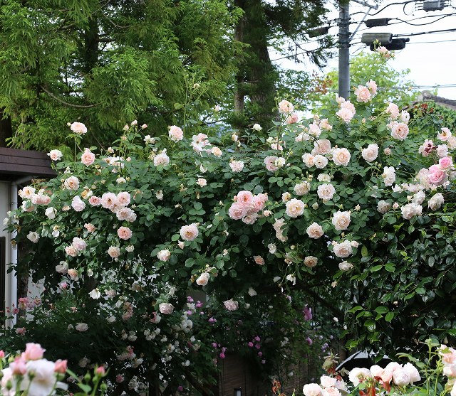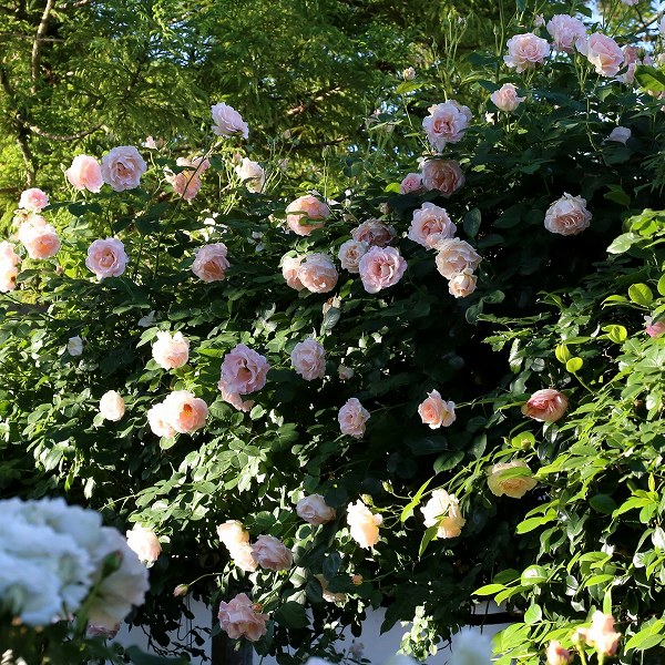 香りよく大きなツルに成長したつる薔薇 ロココ