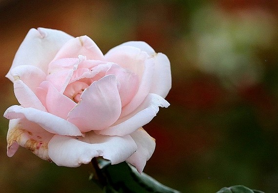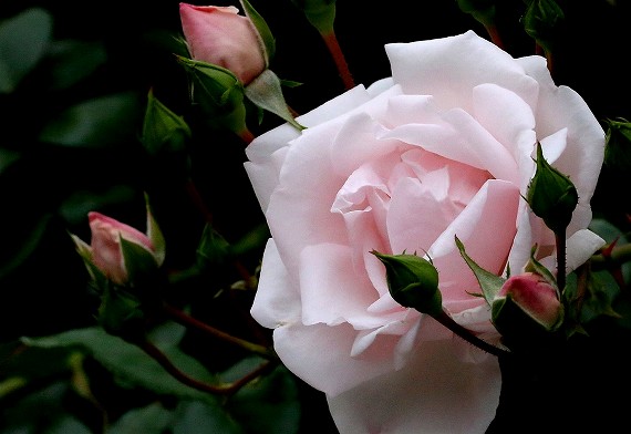 枝先のピンクの薔薇が儚げにみえるのは