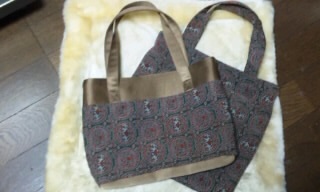 叔母からバッグが届きました。これは帯をリメイクして、叔母が手づくりしたものです。 ひとつはマチのないトートバッグで、手前に写ってるのは、マチがあるバッグ。特に手前のバッグは、画像が良くないのでわかりにくいと思うけど、実物はとっても素敵なバッグに仕上がってるんですよ!ココには写ってないけど、実はボストンバッグ型のもひとつ作ってくれました(^^)最近は服だけでなく、叔母手づくりのバッグも増えつつあります(^^;