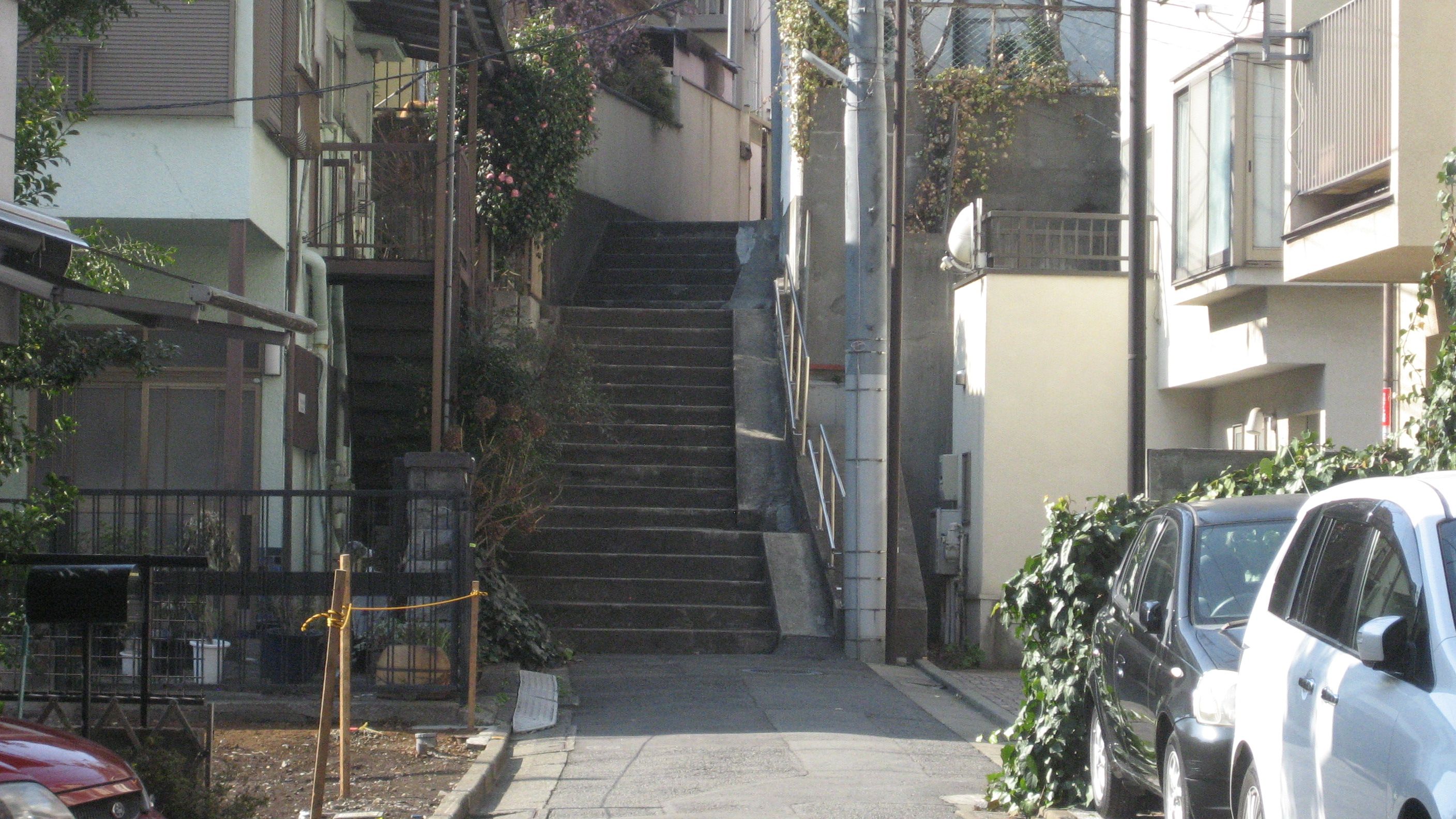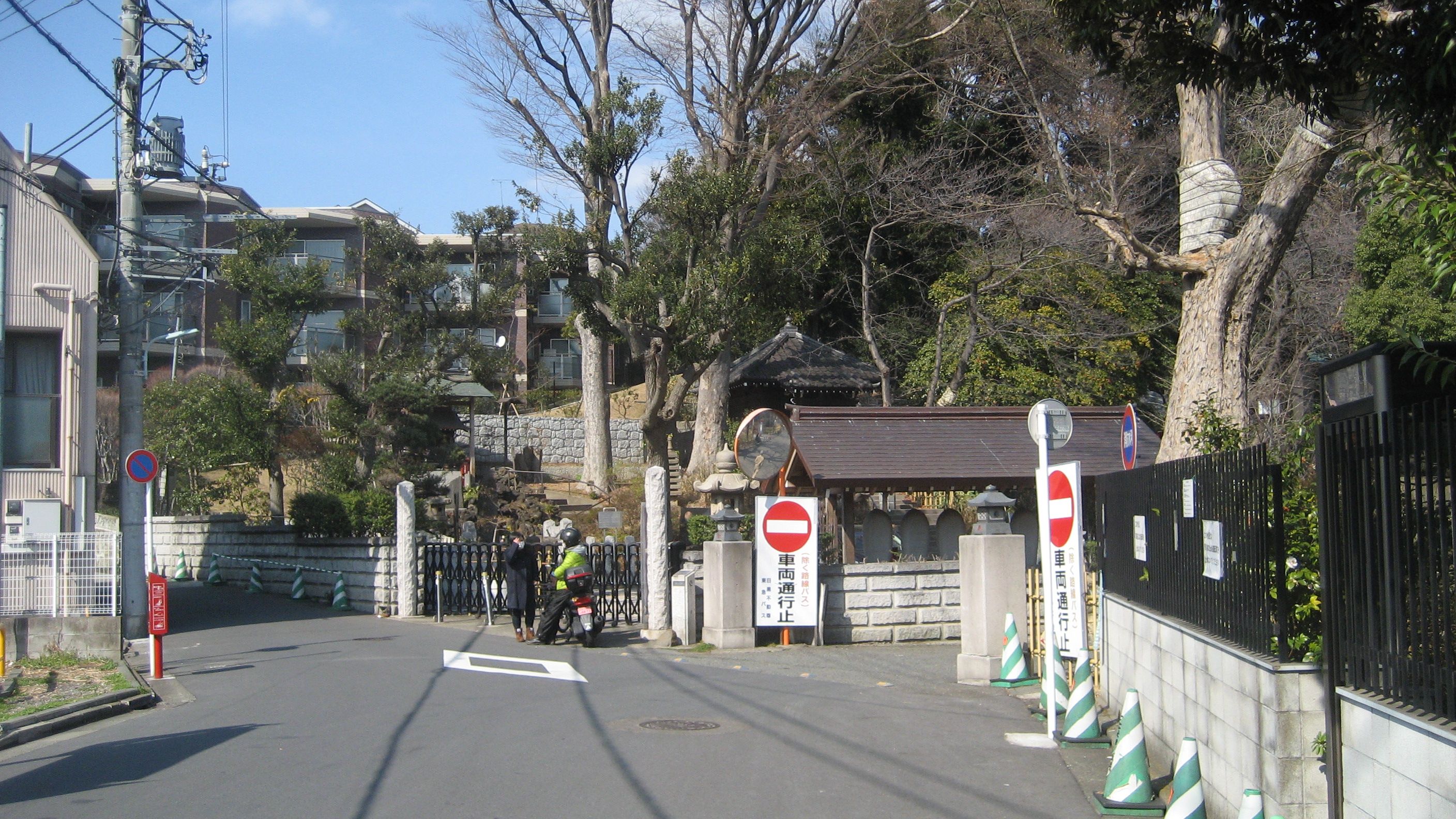3月2日……林試の森から目黒不動を経て五百羅漢寺にお邪魔した私…… 海福寺の山門脇を通って脇の道に入りました。『この坂を 上ったら 右に行き 木があります 木を曲がり 進んだら みんなが待ってるお家です』 家政婦のミタ……見たっけな~ 旦那さんと仲良く蕎麦ランチ中の松嶋菜々子さんも見たっけな~ 可愛い方でした…… 石段見るとなんとなく上りたくなる私です…… 梅……きれいなピンクでした。 ぼちぼち上ったら、また石段……この辺にお住まいの方は大変でしょう。『白い坂道が 空まで続いていた ゆらゆらかげろうが あの子を包む 誰も気づかず ただひとり あの子は昇ってゆく ……… 空に憧れて 空をかけてゆく あの子の命はひこうき雲』(荒井由美) ここは坂道ではなく石段でしたね…… けっこうしんどいけど、よっこらしょ……連れ合いは以前来たみたいですが、お袋はよく上れました。『母がまだ若いころ 僕の手をひいて この坂を登るたび いつもため息をついた ため息つけば それで済む 後ろだけは見ちゃだめと 笑ってた白い手は とてもやわらかだった……』(さだまさし) ため息をつくと幸せが一つ逃げていく……って言うけど、ため息の多い私です。この詩の母親は、ため息ではなく息切れだったのかも? そんなことないか~ 北西方面……上り切ったらそこそこの眺め… 景色の手前にひろがるのは龍泉寺(目黒不動)の墓地でした。境内以外にも飛び地の墓地が点在しているみたいです。 青木昆陽の墓……連れ合いたちはこの墓を見に来たそうです。青木昆陽なんて私はまったく知りませんでしたが、有名な方らしいです。恥ずかしい~ 甘藷先生……って彫られていました。目黒不動に記念碑があった理由が分かった私でありました。 山手通りへ下る道……連れ合いがこの坂を下ったかは不明ですが、たぶんそうでしょう。 庚申様でしょう……石段の途中におられました。 振り返ると……右手はずーっと目黒不動の墓地 大聖院本堂……山手通り沿い、大鳥神社の隣……もと別当寺かもしれません。天台宗の寺院みたいです。松輝山の扁額が光っています。 扁額撮ってくればよかった……何のお堂なのかしら? 納骨堂っぽいけど…… 切支丹燈籠……織部式燈籠とも呼ばれるそうで、三田千代が崎の旧島原藩主松平主殿頭(とのものかみ)の下屋敷(後の大村伯邸)林泉中の小祠内にありましたが、大正15年10月に大聖院に移した。中央のもっとも高い1基の棹石には変形T字クルスとキリスト像とおもわれる形状が、また左右面に、漢字が刻まれている。この燈籠は徳川幕府の弾圧を受けた隠れ切支丹が庭園の祠等に礼拝物として密かに置かれていたもので、歴史的に文化的価値が高く、全国的にも数少ない燈籠……と、目黒区教育委員会の説明書きがありました。 なにやら行列……山手通りぞい… ラーメン二郎……ですって……3時近かったはずなんだけど、人気があるんですね。 REGIONALE……レジョナーレって読むのかな? イタリアンかな? 田道を南西に入ったところで見かけました。 坂 道……きれいなS字を描いて上っていきます。昔、五反田方面から車の時は、目黒通りを通過してこの道を使っていましたっけ……大鳥神社の交差点を左折する際、歩行者が結構いるのでなかなか進みませんでしたから…… 馬喰坂(ばくろざか)……「ばくろ」とは、風雨にさらされ穴のあいた状態を示す、目黒の古い方言だそうだ……馬を食っちゃうわけではなさそうです。 馬喰坂上から……切り開いて作られた道だと思います。 北東の景色……近くに「なべころ坂」なんてのがありますが、この日は行きませんでした。 こんなところに……幾度も通過したことがありますが、初めて気付きました。車じゃ無理ですね。 馬喰坂上の庚申塔群……60日毎に巡ってくる庚申の日に当番の家に集まり、青面金剛を祀って豊作を祈って飲食をともにしながら夜を明かす……江戸時代にはやった庚申待ち……その庚申待ちを3年18回終えた時に建てられたのが、庚申塔。 一般的には合掌六臂(ろっぴ)の青面金剛が刻まれていますが、右から二番目は三猿だけみたい……どれも古いですね。 現代彫刻美術館……興味がないのでパス…… とちの木庚申をさがしにやってきました。 とちの木庚申……たぶん、おそらここれでしょう。変則五差路の交差点……陰に隠れていたので、パッと見は気付きません。そばを流れていた川から拾われたものだそうです。傍らにあるとちの木からこう呼ばれるようになった……と区のHPに書かれていましたが、木なんてないじゃないの? 谷戸前川緑道……って言うそうです。 名称も独り反省会で初めて知ったのですが、当然少し歩いた私です。 マンホール……羅漢寺川緑道では、かすかに水の流れる音が聞こえたのですが、ここでは分かりませんでした。いまも流れがあるのかしら? 階段とアーチ…… また別のアーチ……雨の日に傘をさしていたら邪魔です。 右はちょっとした空き地ですが、家を建てるのは難しいの
