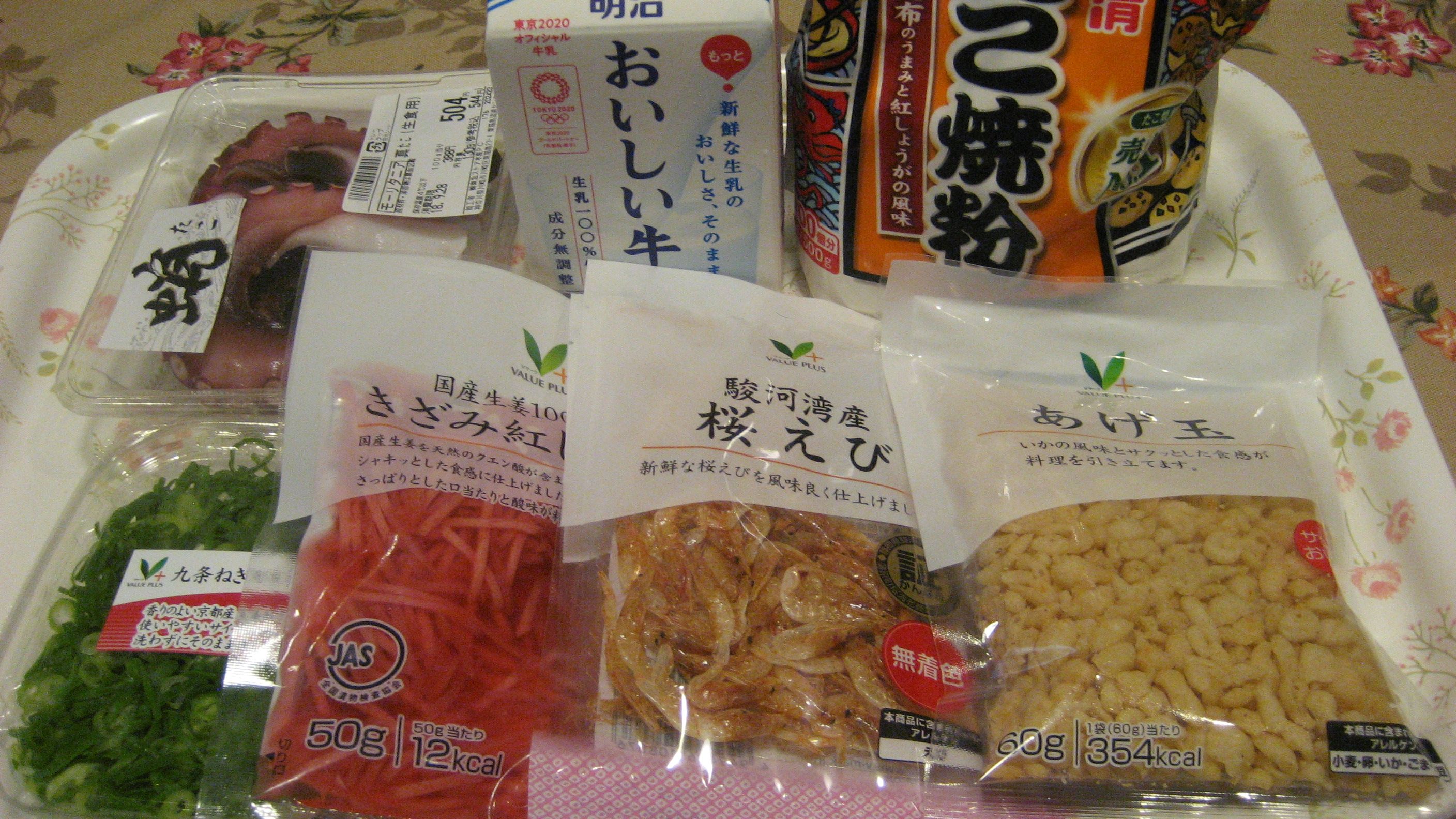 たこ焼きが食べたいと連れ合いが言っていたので、さっき買ってきました。「東京のたこ焼きはあかん」と関西育ちの連れ合いは言いますが、私の作ったたこ焼きは「美味しい」と言って喜んでくれます。斯(かく)いう私も、自分で作ったものを美味しいと思っています。 子供の頃[三谷]にあった子ども相手のたこ焼きは美味しかった。3個10円だったけど、ちゃんとタコも入っている。たまに外れで「入っていないよ~」って申告すると、「ごめんね」と新しい1個をくれましたっけ。私たちも嘘はつかなかったし、おばちゃんも親切でした。 大阪は西中島…‥阪急京都線南方駅から見える「たこ焼き十八番」は美味しかったな~。連れ合いもよく知っている。大量に投入する天カスが焼きあがった時に表面のほうでサクサク……トロッとクリーミーな中の生地とあいまって幸せな気持ちになれるたこ焼きでした。もう長いこと食べてないな~ そうそう、クリーミーな秘訣は牛乳も使っていると店で教えてもらったので、私も牛乳を投入しています。美味しいですよ~ みなさまもお試しあれ…… タコ、秘訣の牛乳、粉、ねぎ、紅ショウガ、干し桜えびとあげ玉です。 タコは火を通すと小さくなるので、それを考慮して大きめにカット。 ネギは使い切り用のきざみパックにしましたが、もうちょっときざみます。 紅ショウガは好きなので多めに入れます。 このままでも良いのですが、桜えびはお酒をちょいとかけておきます。 あげ玉(関西では天カスです)は、袋のままもうちょっとつぶしておきます。 ということで、三時のおやつにでも焼いてみましょう。 連れ合いの笑顔がみたいので、美味しく焼かないとね~ [訂正と加筆](2019.9.27) 昨晩、本文中のサンヤの文字が「山じゃなくて、三じゃないの~」と連れ合いから指摘を受けました。おっしゃる通り、その通りなので訂正しました。 蛇足ながら、そのたこ焼き屋の裏にはかき氷屋があり、子どものくせに梯子をしたものです。いくらだったかはっきり記憶していませんが、数十円だったのでしょう。ちゃんとしたガラスの器に氷を削って、シロップは2色にもしてくれました。底にはイチゴで、上にレモンをかけるのが私の好みでした。食道と胃がジンジン……我慢してかき込んだワンパクでした。