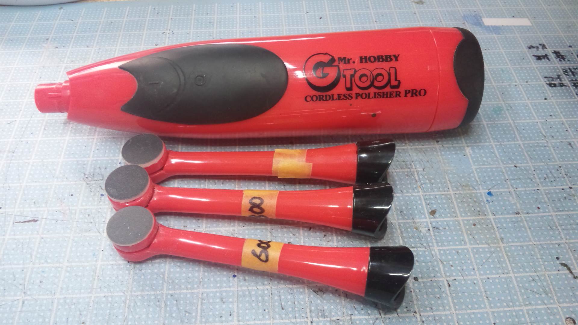 パテ埋めをした後のヤスリがけ等に、 クレオスの Mr.ポリッシャー も重宝しています。