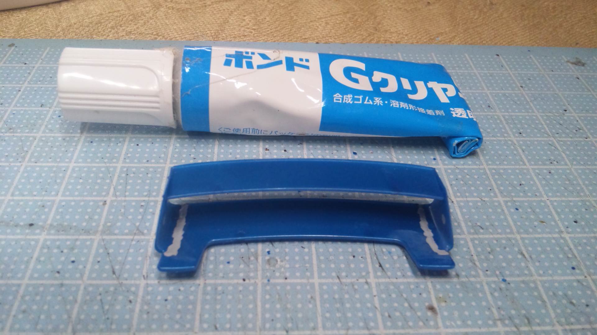 リアウイングの両端翼は、結局先に接着しました。やはり、つなぎ目段差が気になるのでパテを置きました。一緒に映っているのは、私の好きなボンド= Gクリヤー です。セメントと違ってプラを侵食しません。水平翼はこのボンドを点付けして仮止めしています。簡単に外せます……ってことはセメントほど強力ではありません……でも透明であり、接着後にはみ出したところはピンセットでつまんで綺麗に取り除けます。クリアーパーツにも良いと思っていますし、基本的に私はこれを多用しています。(この両端翼の場合は、コンパウンド等 後で少々力がかかりますからセメントを使用です。)
